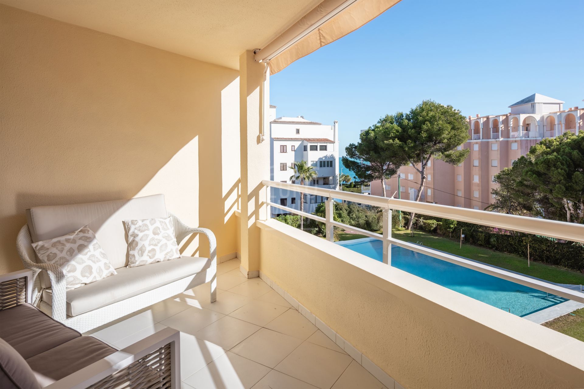 El apartamento dispone de aire acondicionado, garantizando confort durante todo el año.
