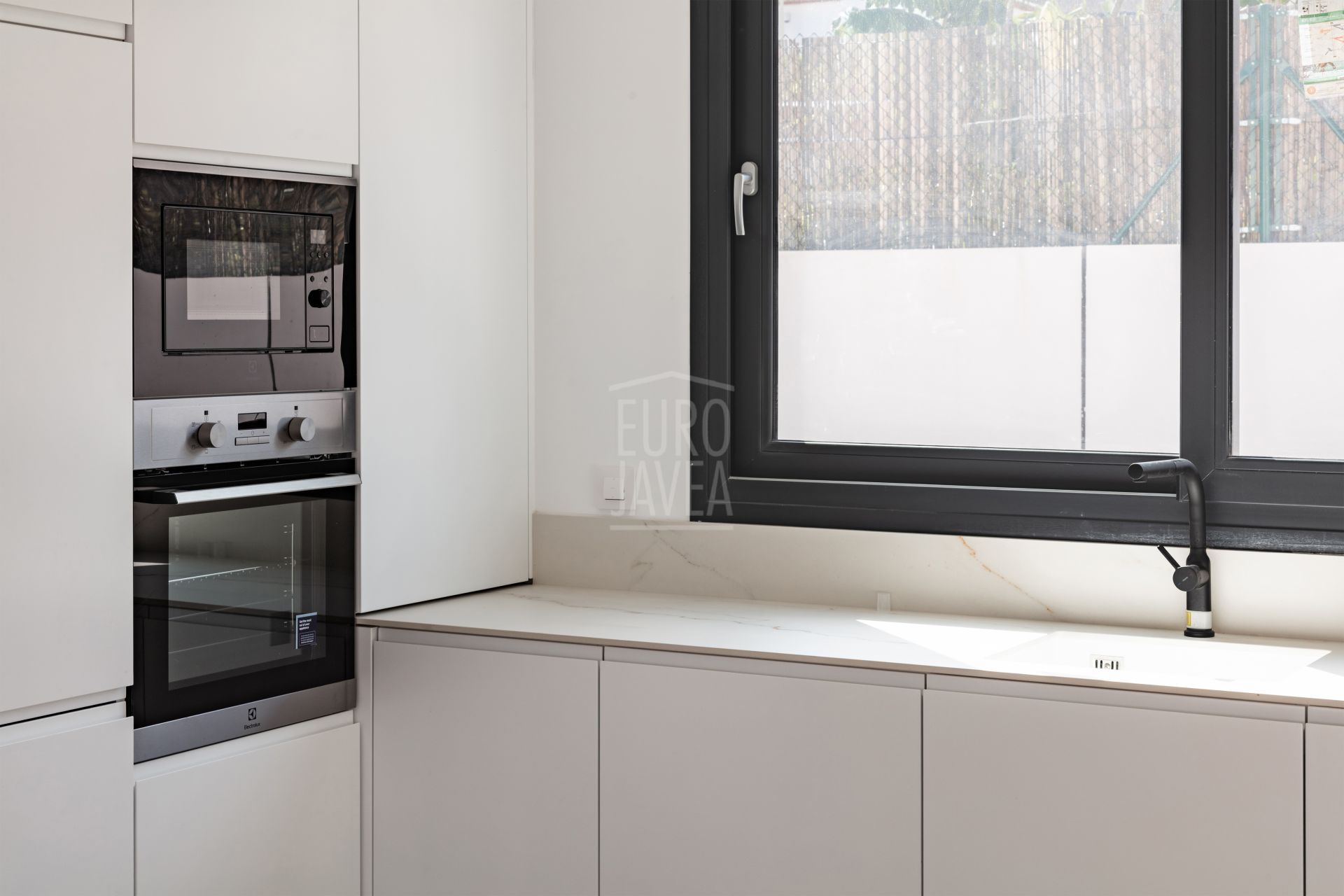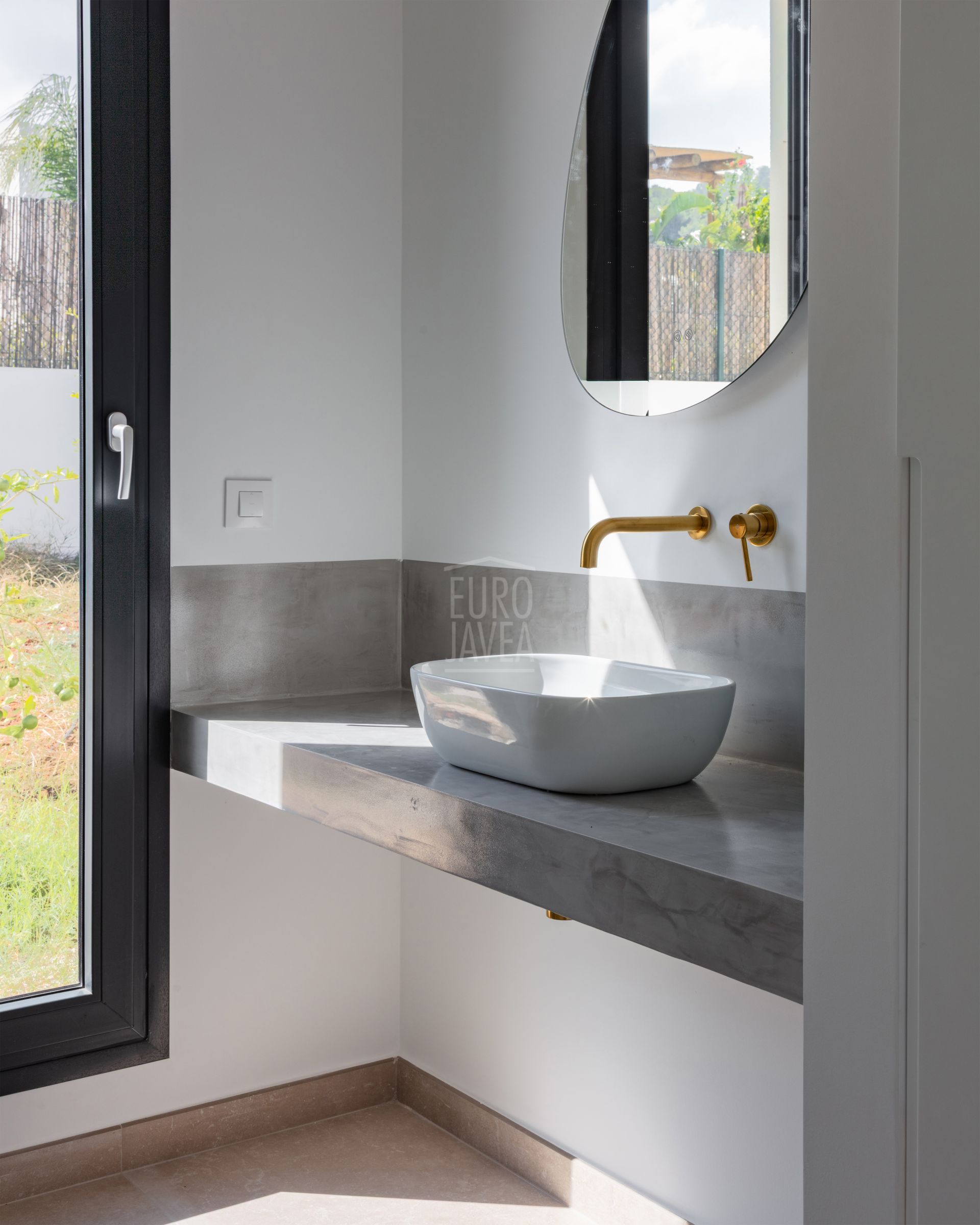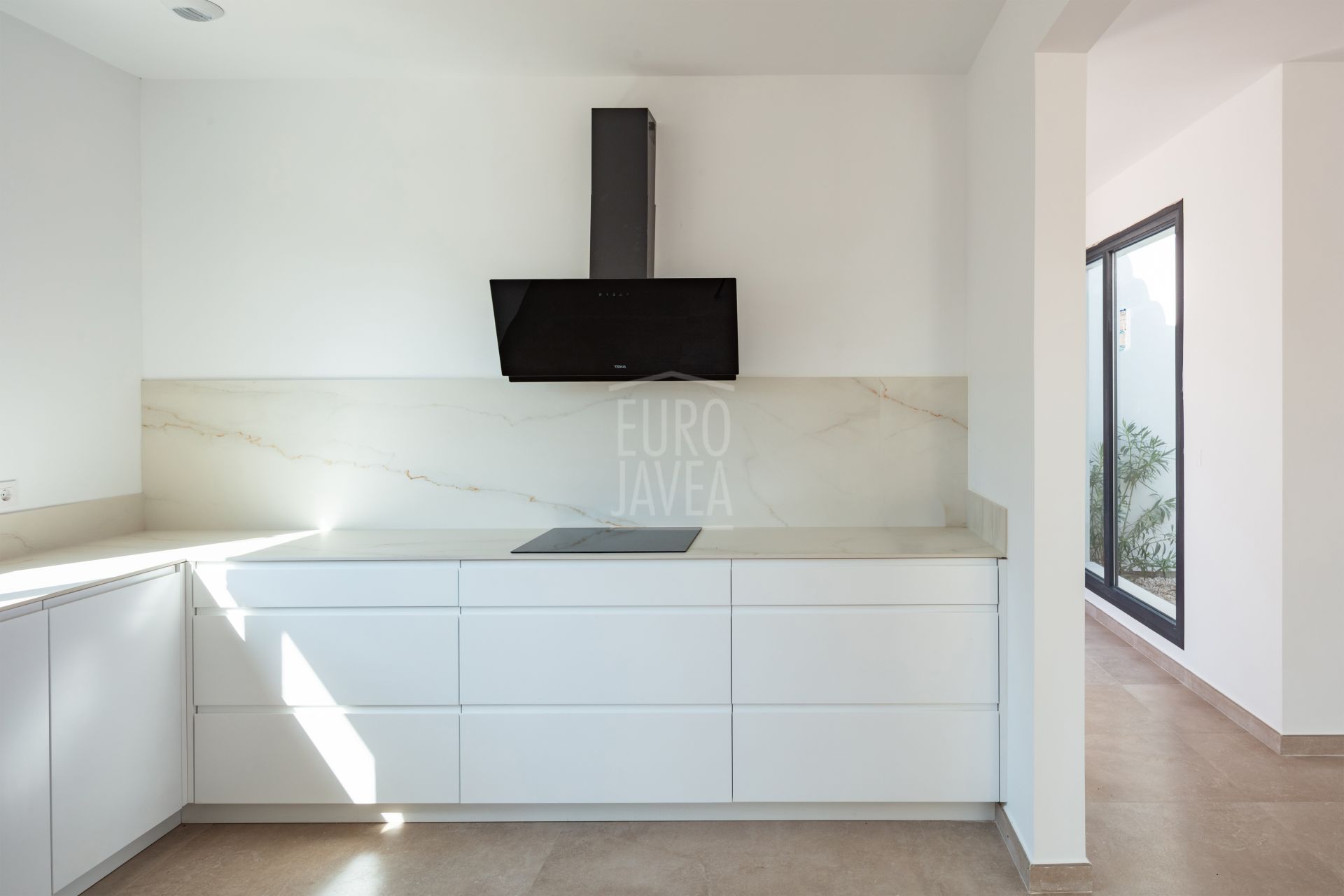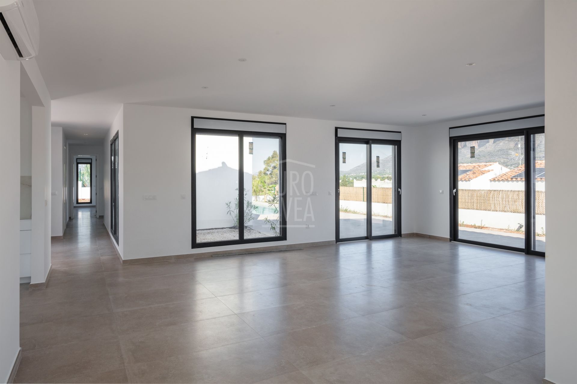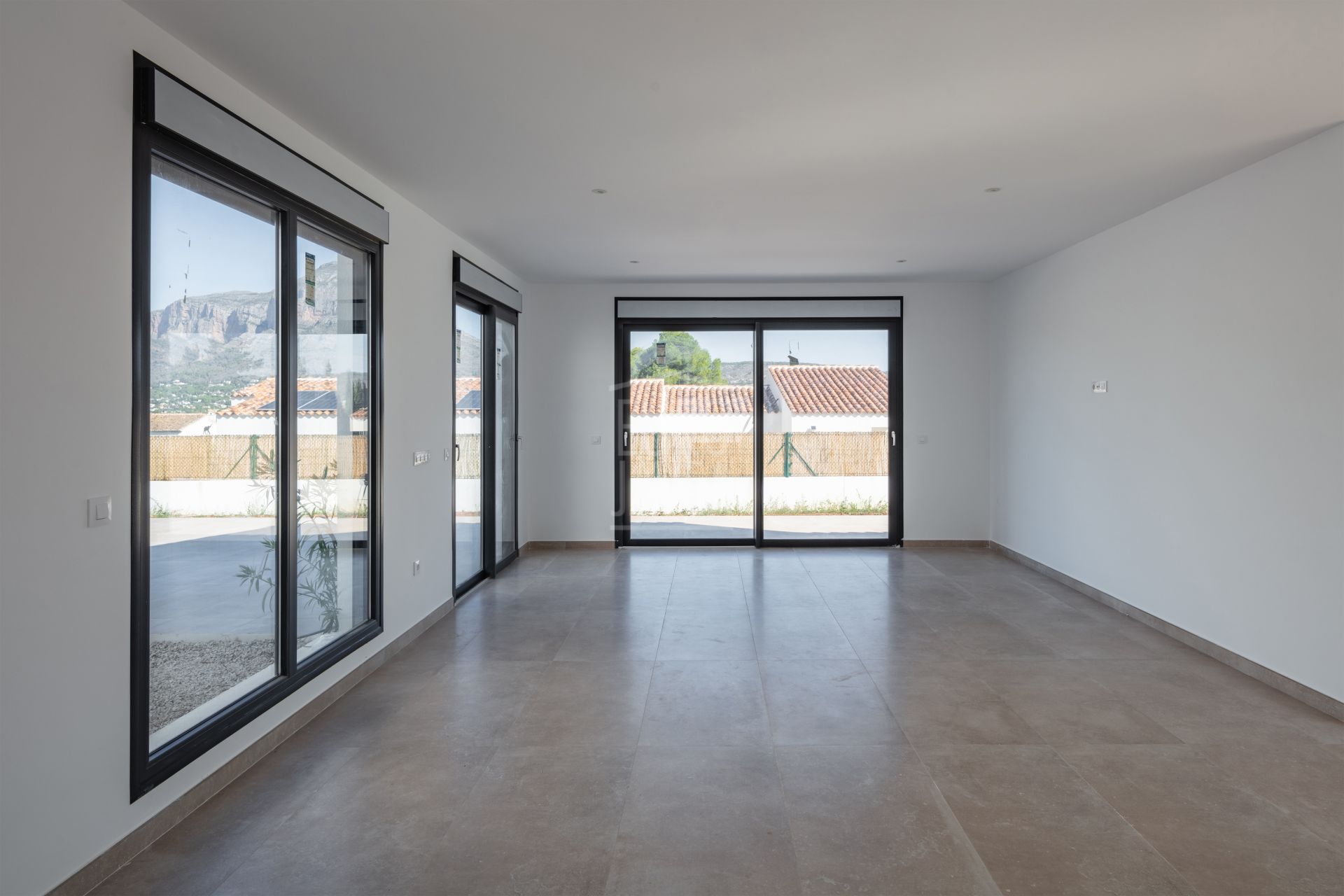 Le salon est lumineux et agréable grâce aux grandes fenêtres et à l’accès direct à la terrasse couverte et à la piscine privée. De là, vous profiterez d’une vue panoramique imprenable sur le Montgó et la nature environnante. La maison offre quatre grandes chambres, toutes équipées de placards intégrés et de salles de bains attenantes au design moderne et aux finitions haut de gamme.