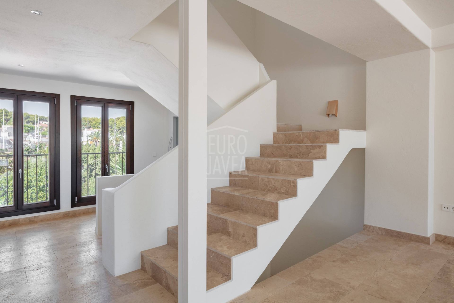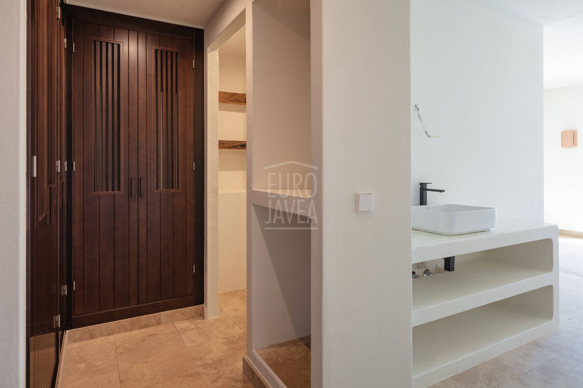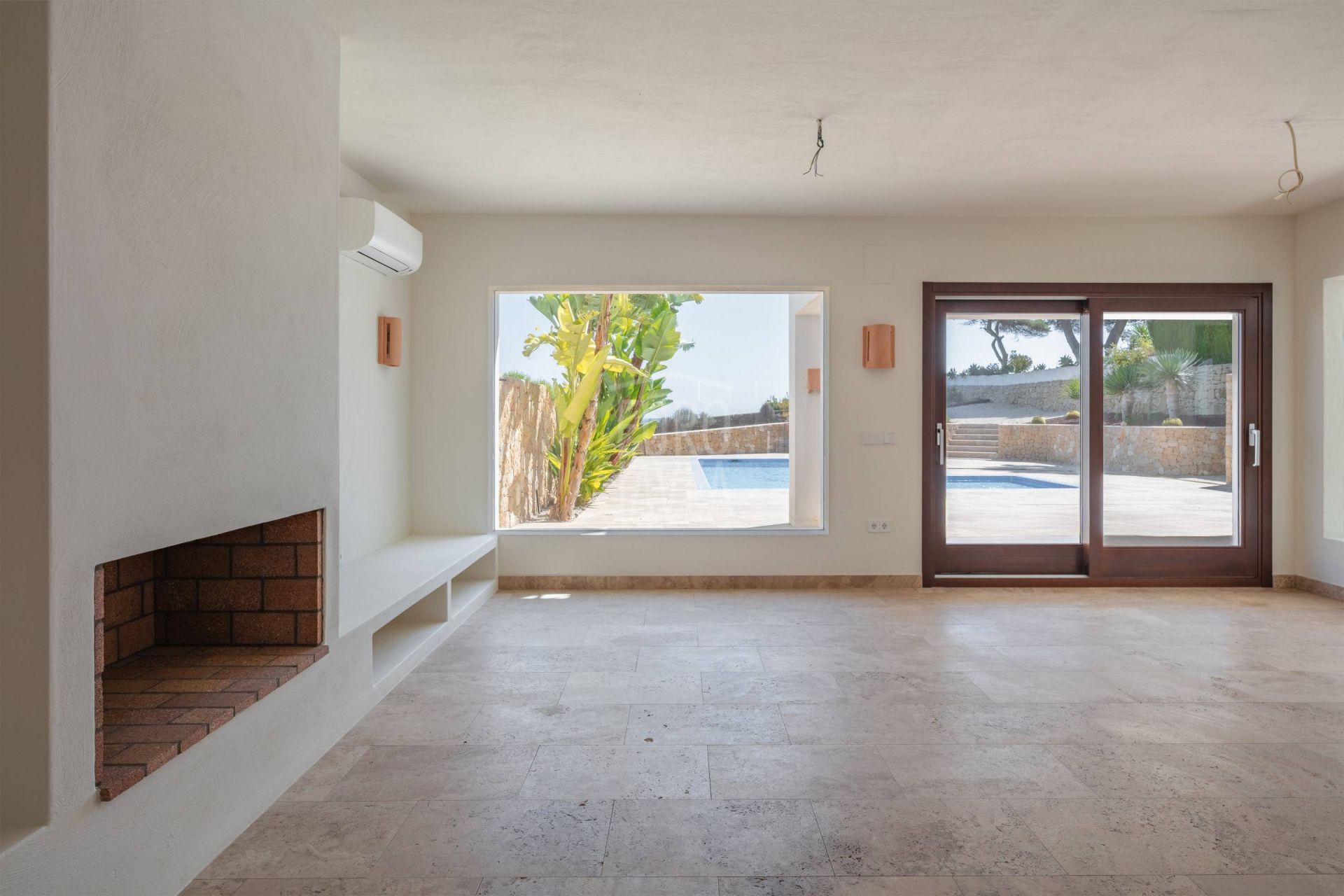 À l’extérieur, la grande piscine privée s’intègre parfaitement dans le paysage marin, entourée de jardins consolidés avec végétation locale et de terrasses en pierre naturelle. Les murs en pierre sèche ajoutent authenticité et harmonie avec l’environnement, créant des espaces conçus pour profiter du climat privilégié de Moraira toute l’année.