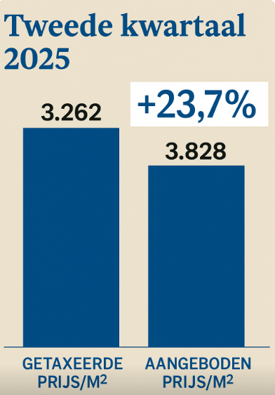 De getaxeerde prijs per vierkante meter bereikte €3.262/m² in het tweede kwartaal van 2025, een stijging van 23,7% ten opzichte van dezelfde periode vorig jaar en het hoogste niveau ooit in het gebied. De gemiddelde vraagprijs per vierkante meter kwam uit op €3.828/m², een stijging van 16,2% vergeleken met hetzelfde kwartaal van het voorgaande jaar.