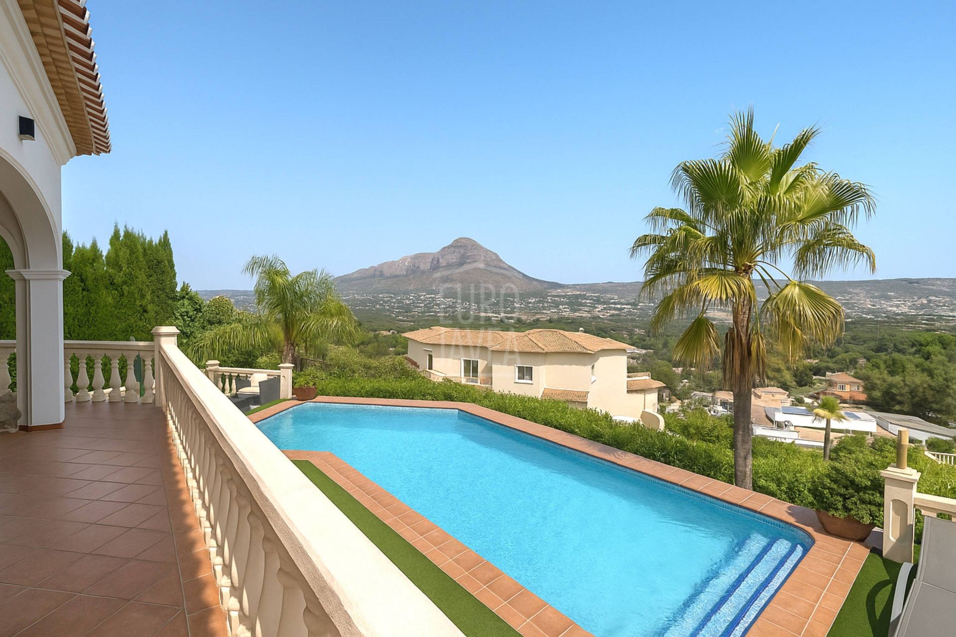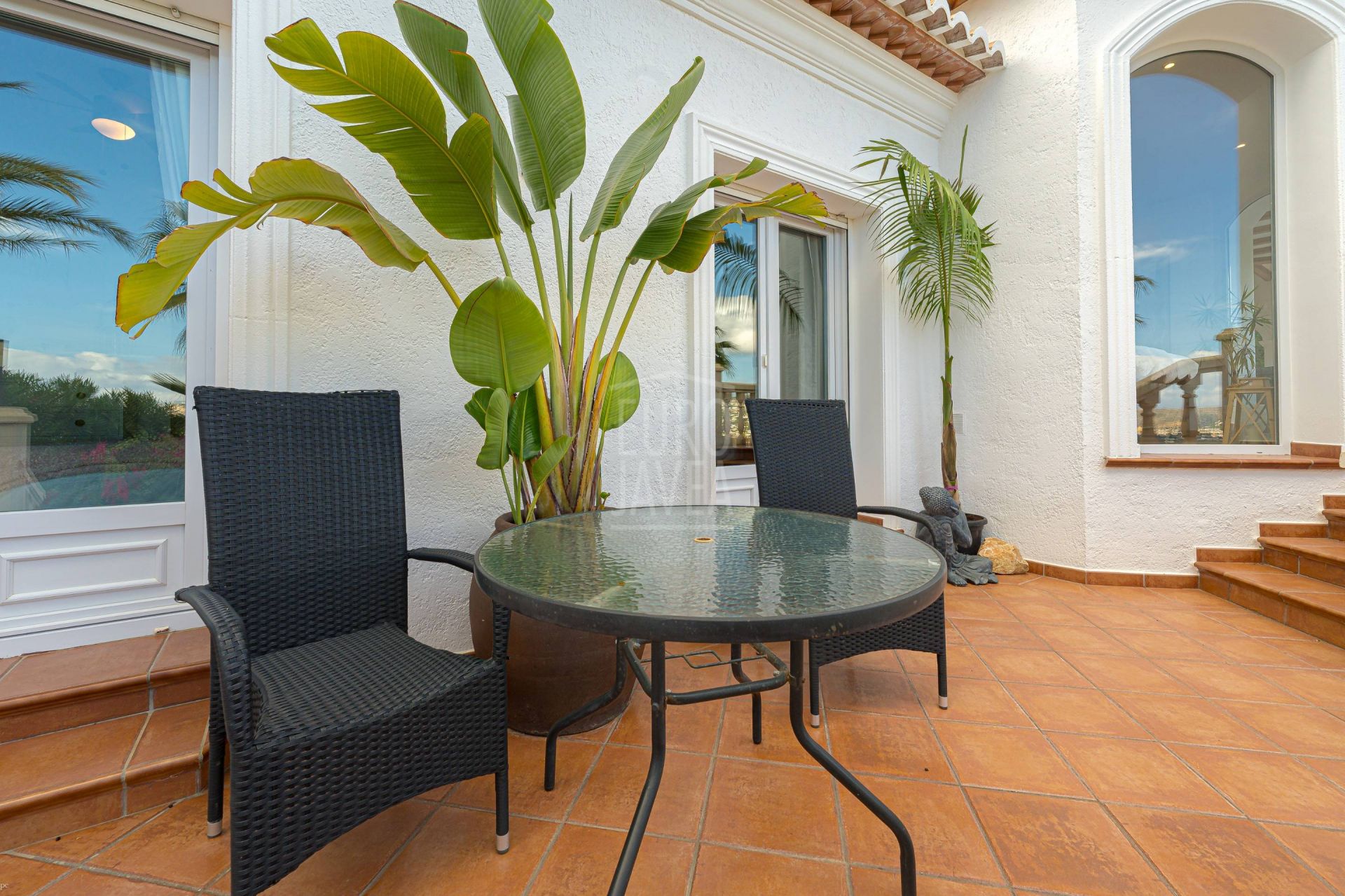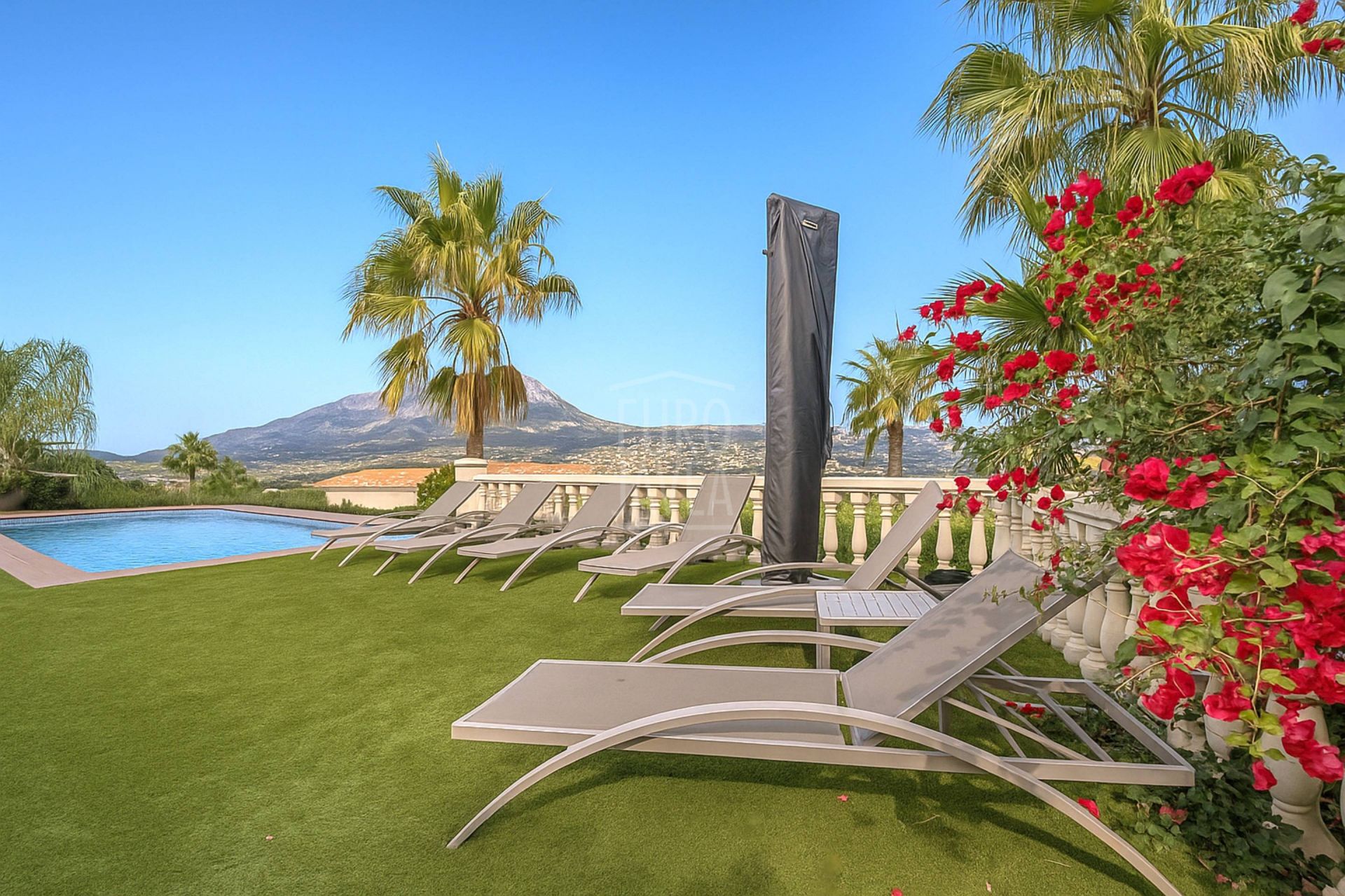 De omgeving bepaalt het karakter van deze villa: ruimte, rust en open uitzichten die zich uitstrekken van het blauw van de Middellandse Zee tot het majestueuze silhouet van de Montgó. Natuurlijk licht stroomt moeiteloos door elke ruimte, vergezeld door een zachte zeebries die door de tuinen waait en het zwembad omringt, wat zorgt voor een serene en evenwichtige sfeer.