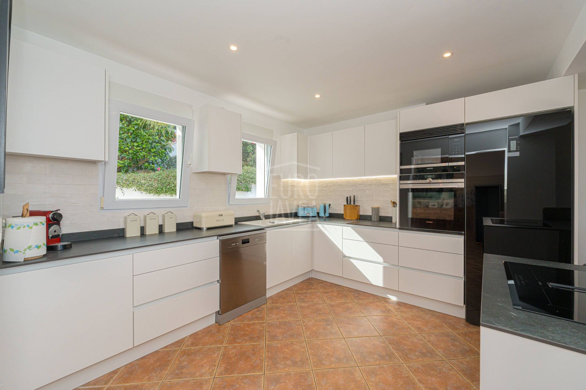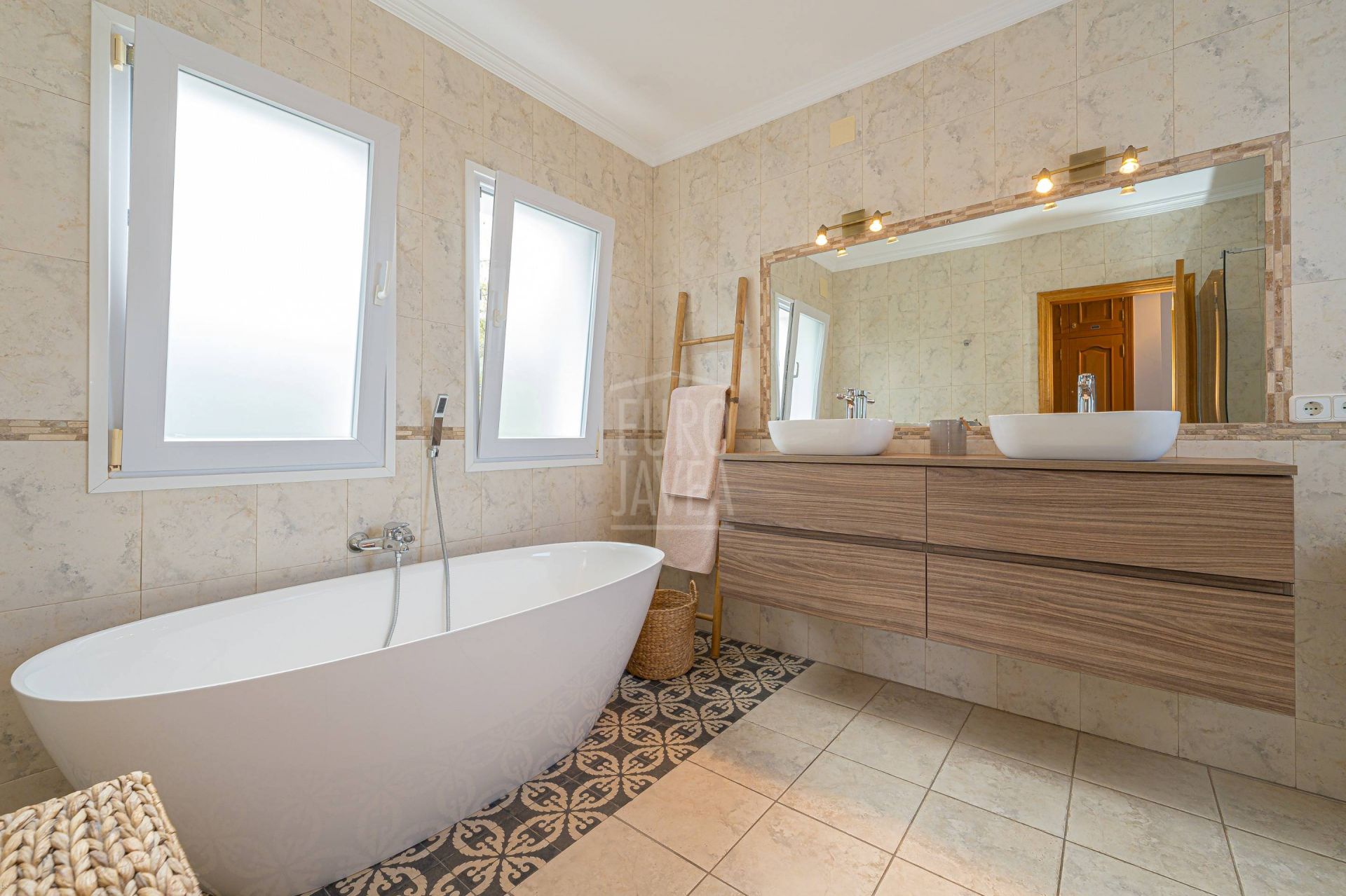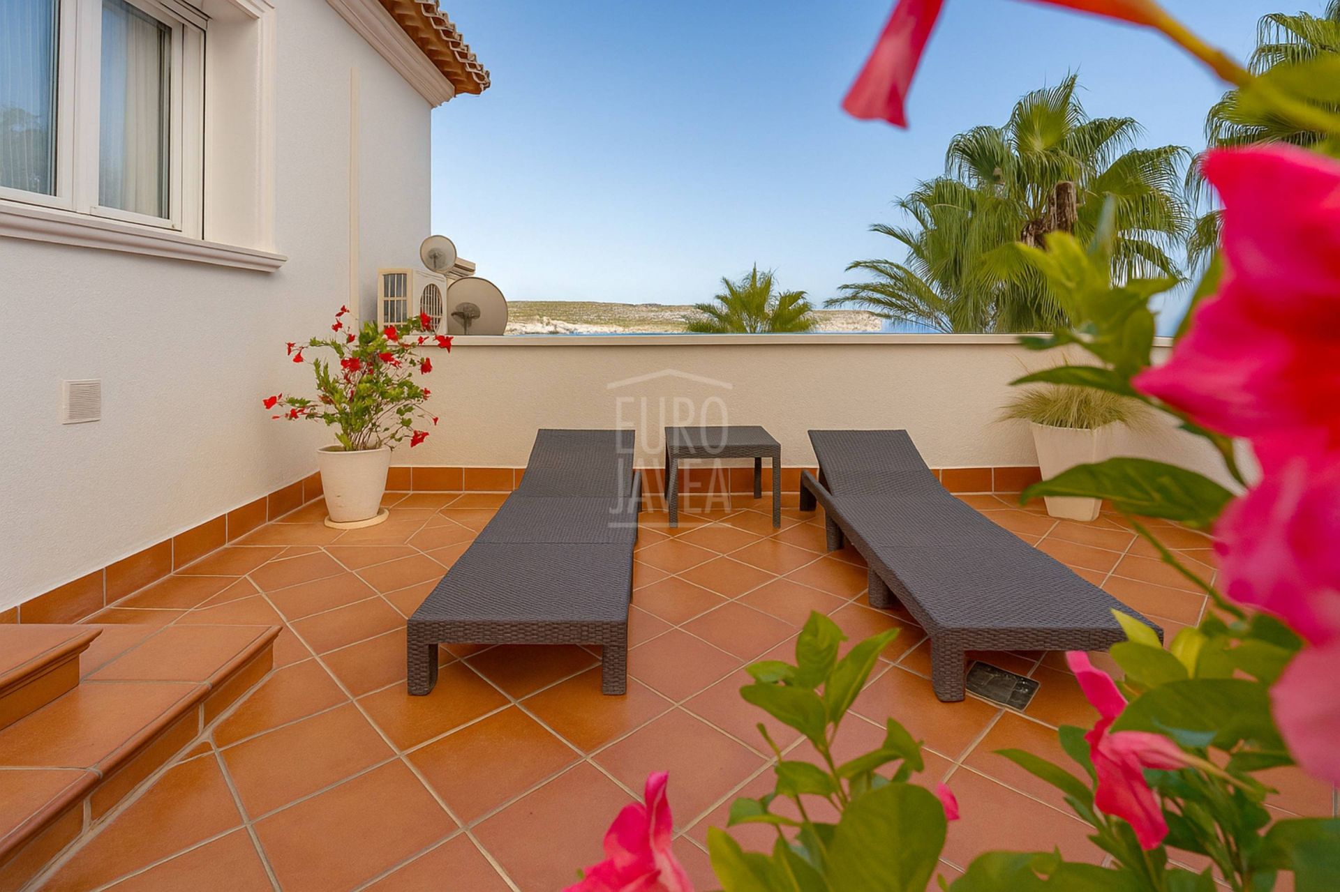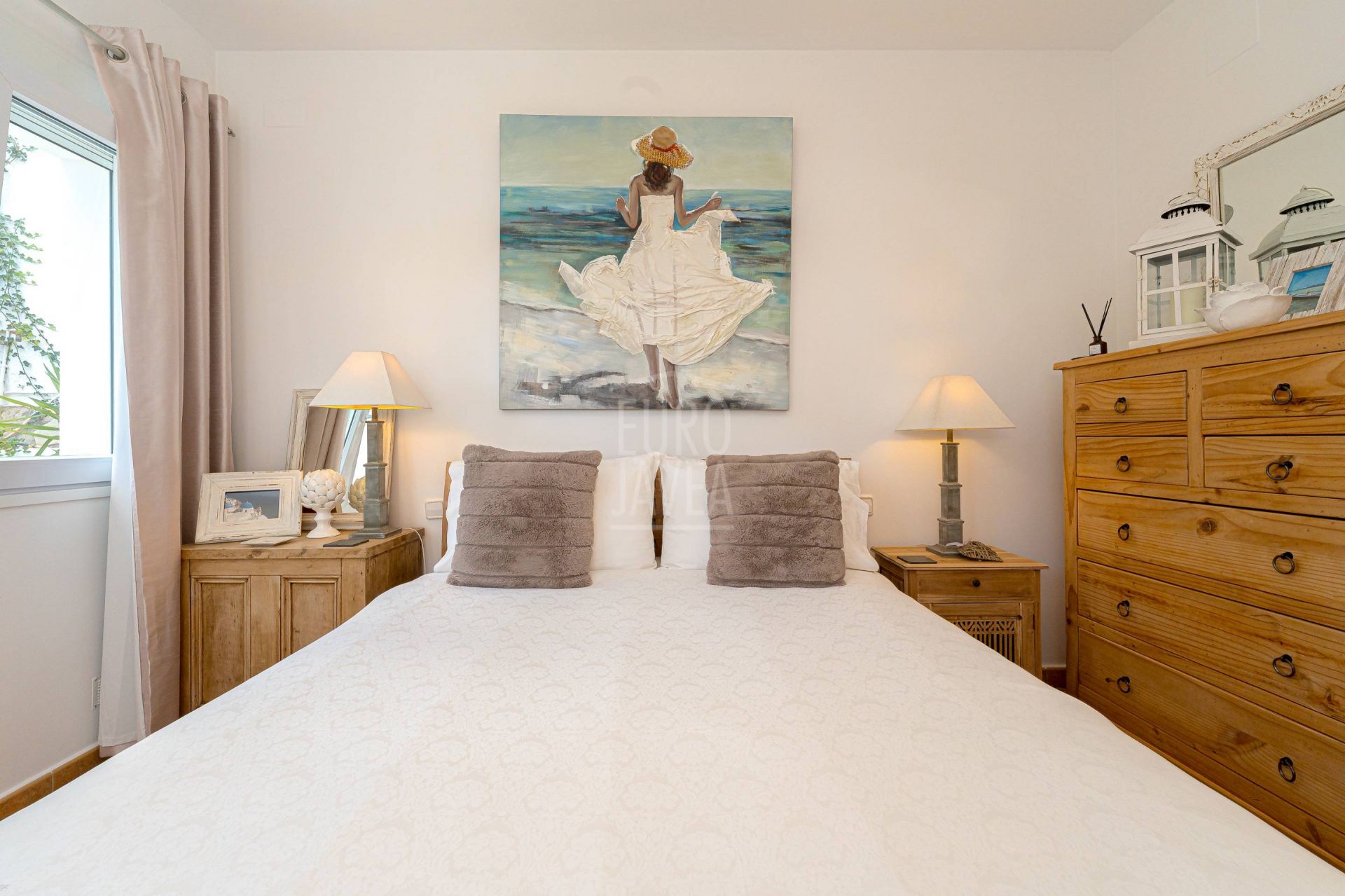 De omgeving bepaalt het karakter van deze villa: ruimte, rust en open uitzichten die zich uitstrekken van het blauw van de Middellandse Zee tot het majestueuze silhouet van de Montgó. Natuurlijk licht stroomt moeiteloos door elke ruimte, vergezeld door een zachte zeebries die door de tuinen waait en het zwembad omringt, wat zorgt voor een serene en evenwichtige sfeer.