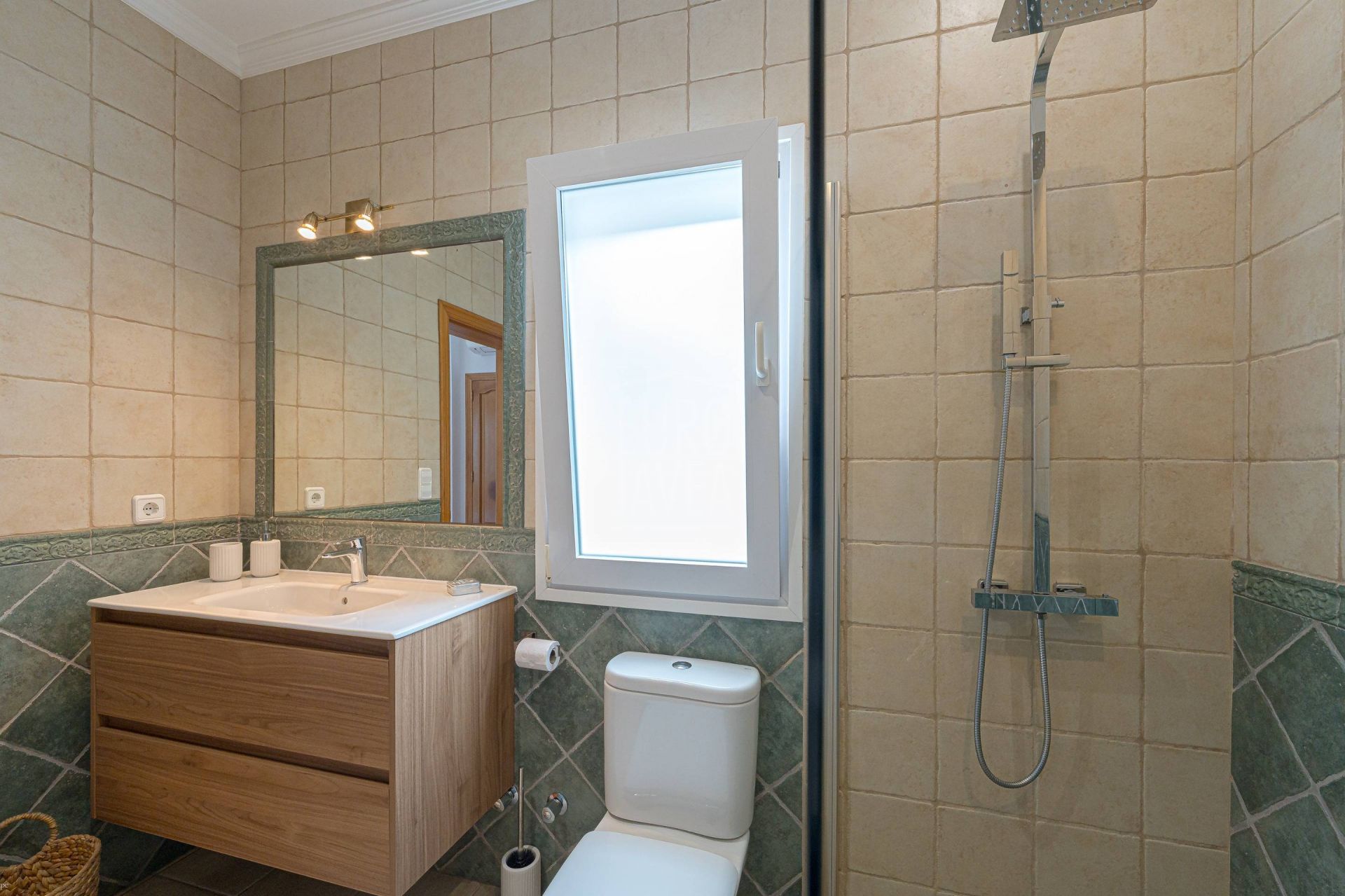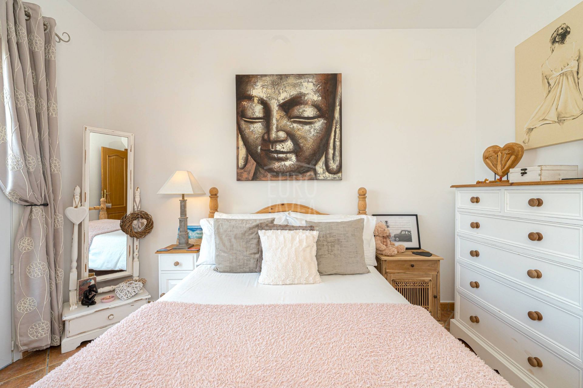 De villa beschikt over vier slaapkamers en drie badkamers, waaronder een hoofdsuite met privéterras en zeezicht. Elke ruimte is ontworpen met aandacht voor comfort en rust, met veel natuurlijk licht en een praktische indeling. Voorzieningen zoals vloerverwarming, airconditioning, een alarmsysteem en zonnepanelen zorgen het hele jaar door voor comfort en energie-efficiëntie.