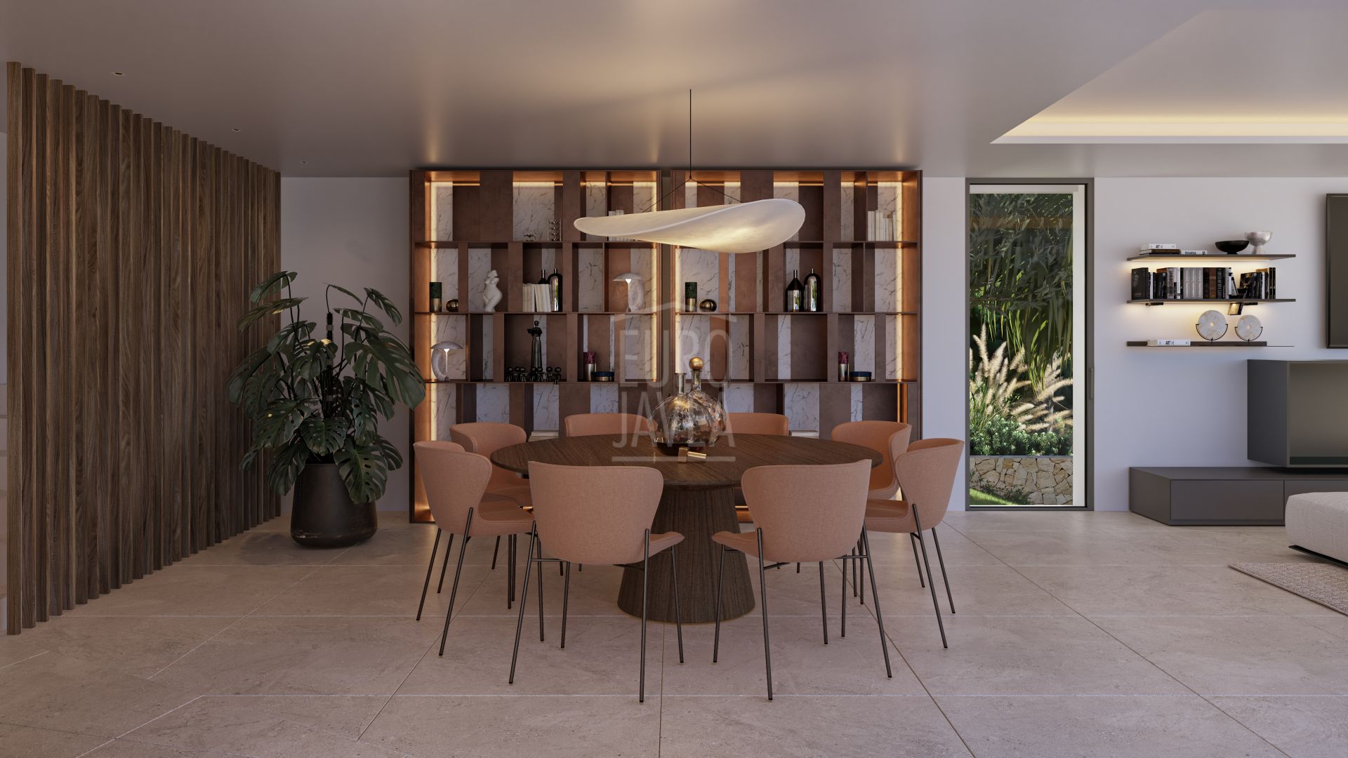 Outside, the property boasts large terraces, a chill-out area, and a spectacular infinity pool, from which panoramic sea views can be enjoyed, creating an exclusive and relaxing atmosphere.