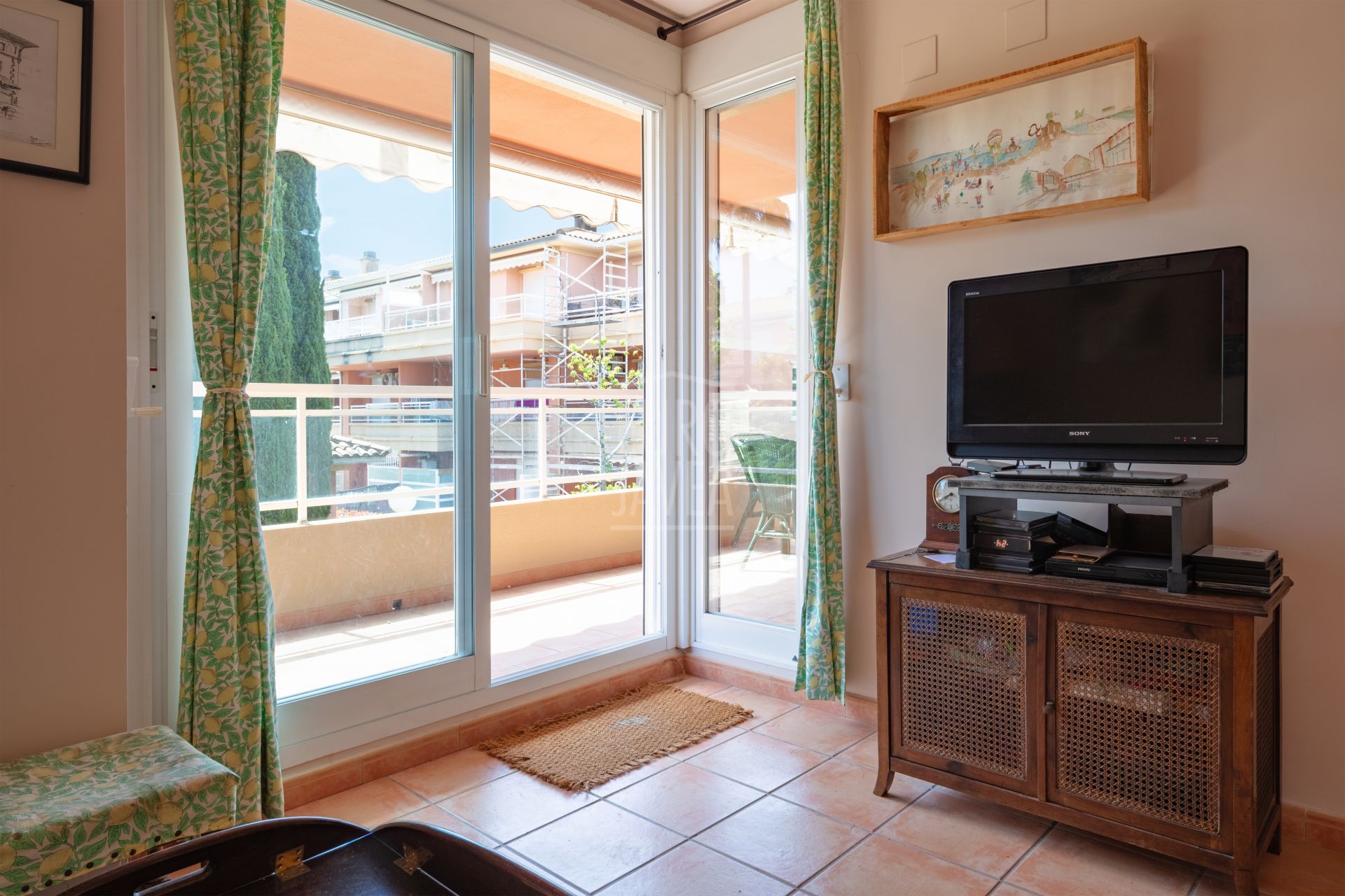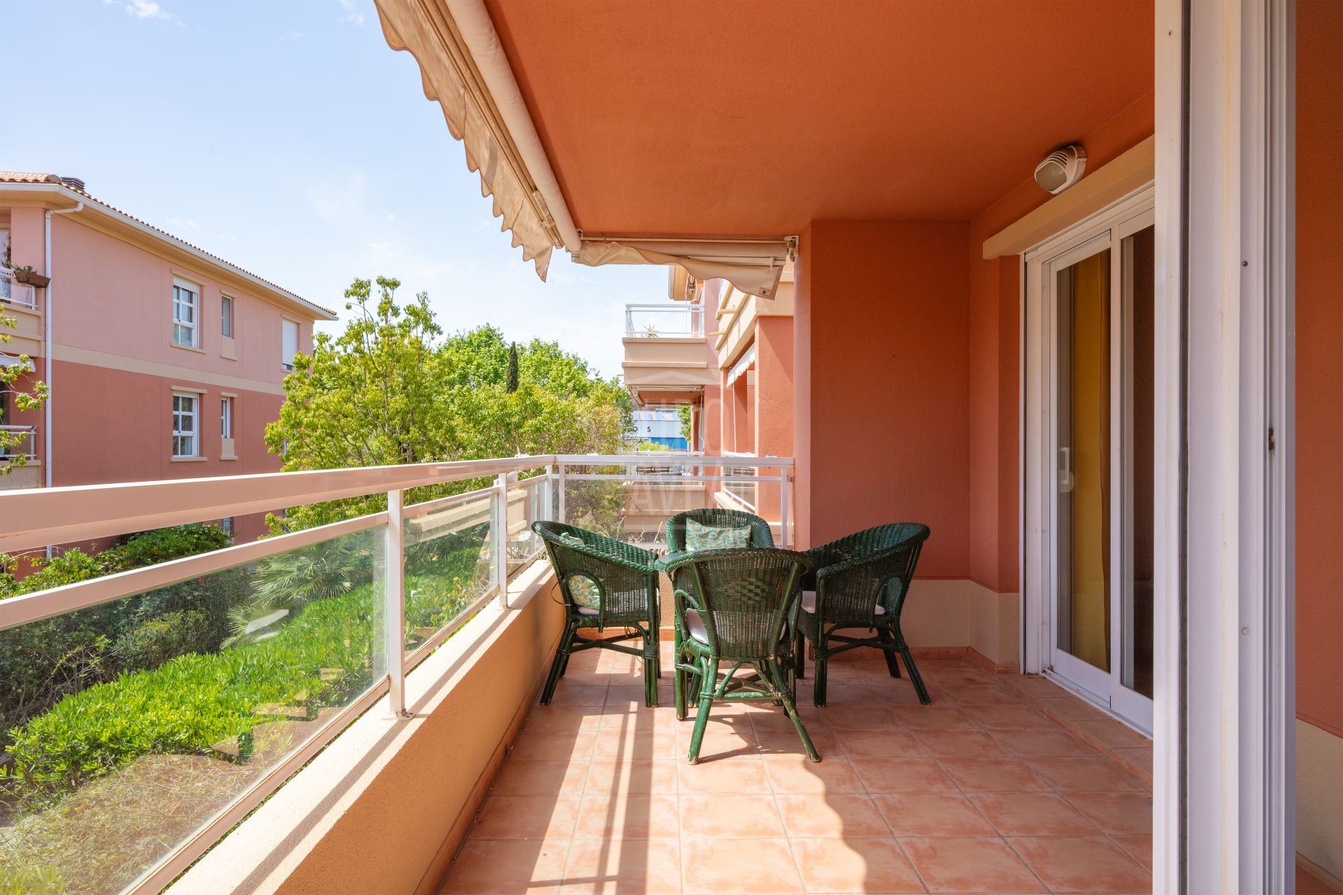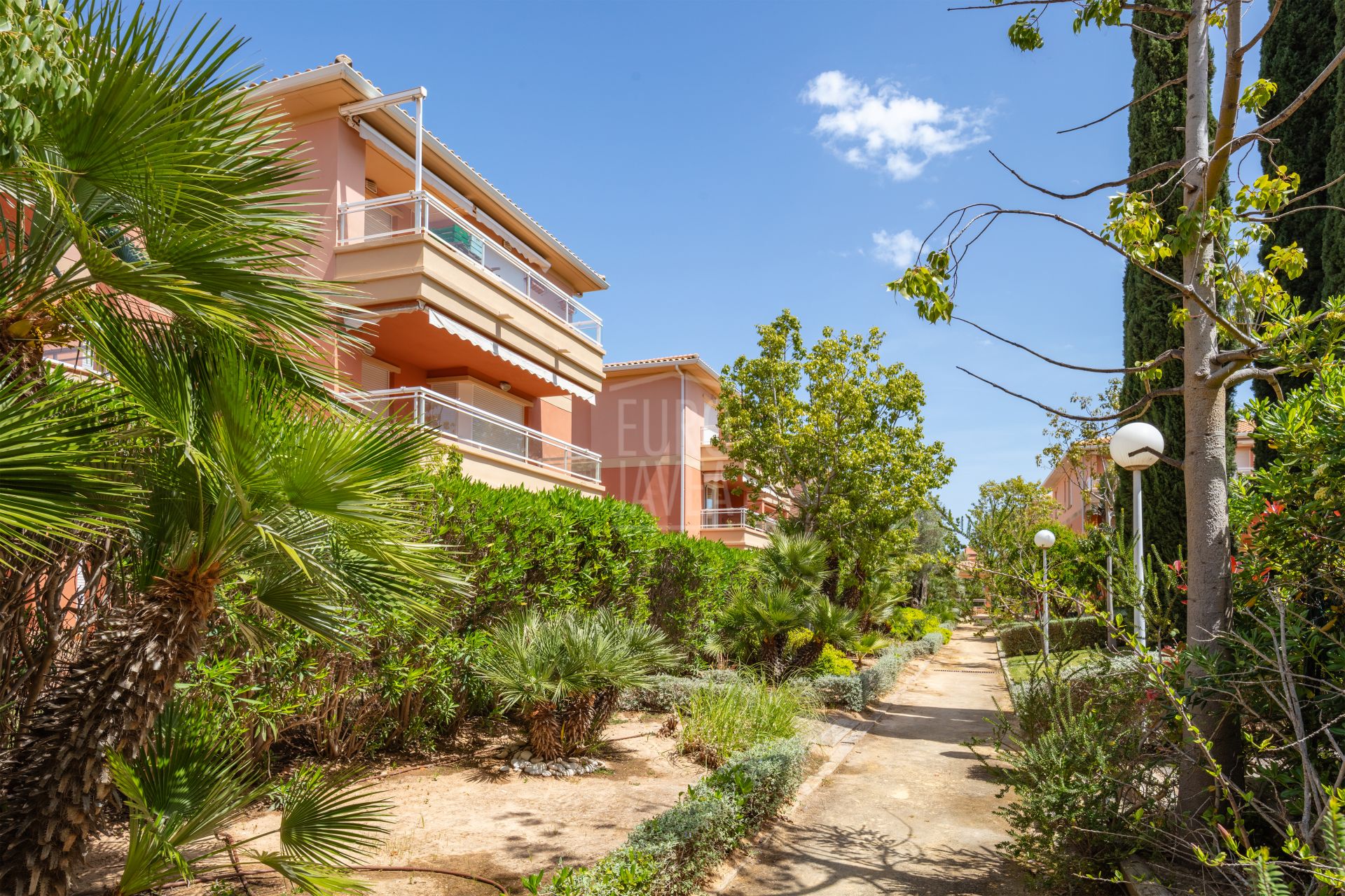 The terrace, broad and sunny, is one of the property's main attractions, offering pleasant open views of the landscaped areas and the swimming pool. It is the perfect spot to enjoy the Mediterranean climate, whether having breakfast in the sun or relaxing at the end of the day.