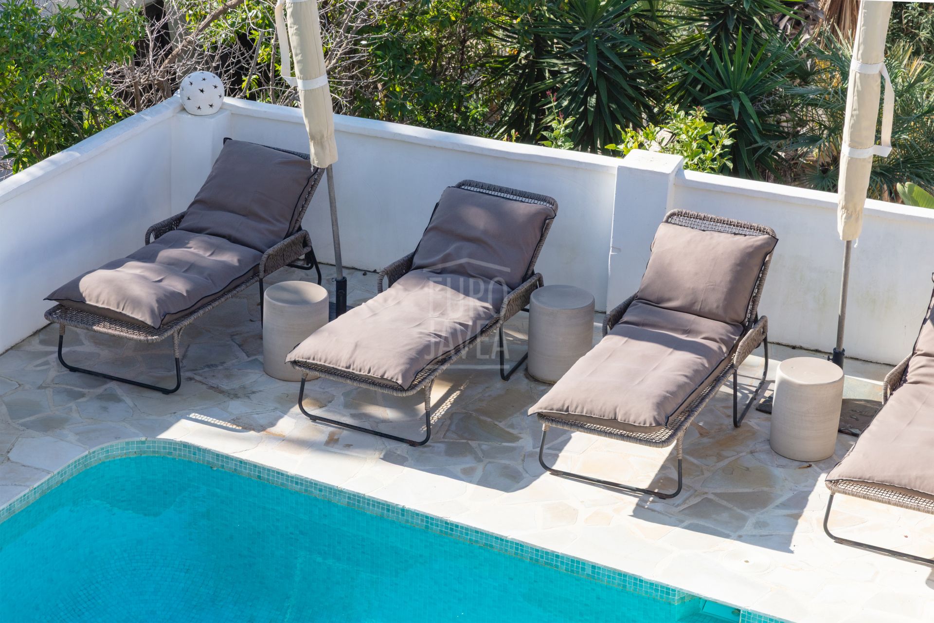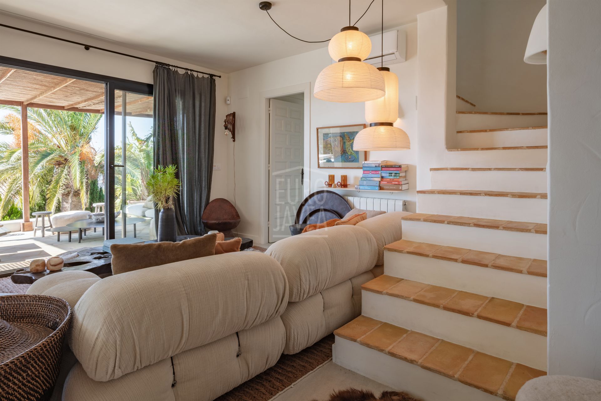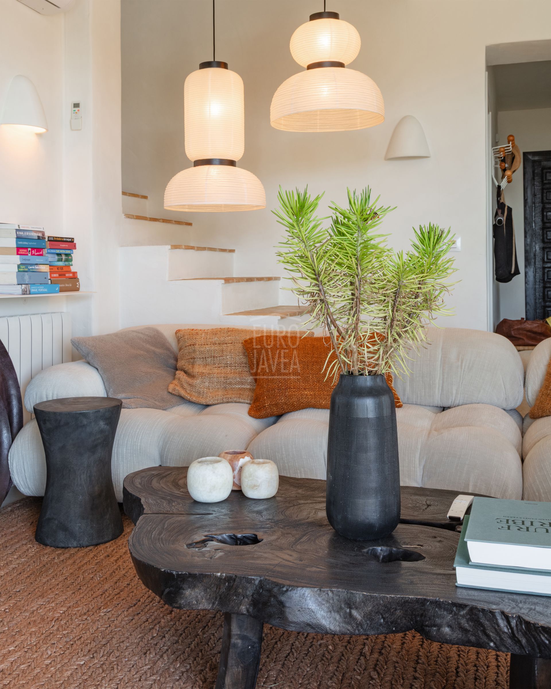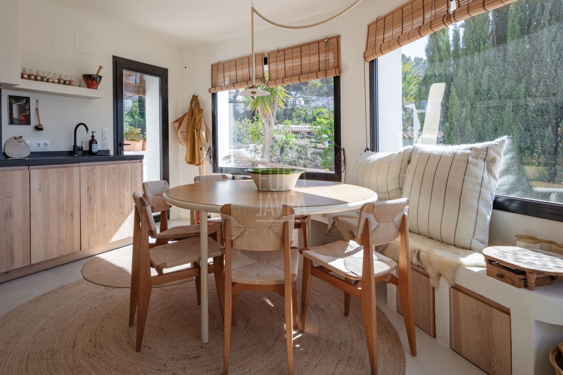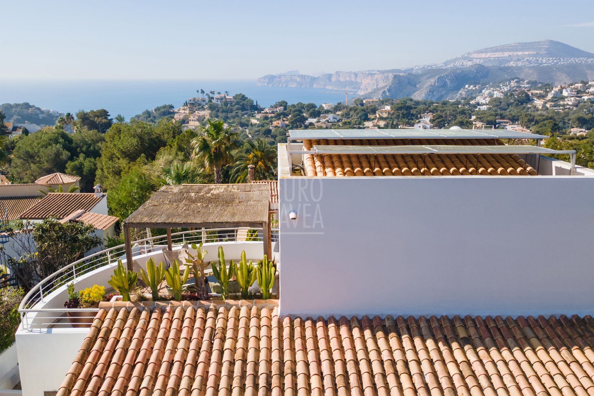 The upper floor is designed as a private level with a generous master suite, featuring an en-suite bathroom and direct access to a spacious terrace. From here, you can enjoy panoramic views over the Mediterranean Sea and the surrounding area, including the distinctive Montgó. Additionally, the villa features a separate solarium, ideal for relaxing in peace and making the most of the views and the Mediterranean climate.