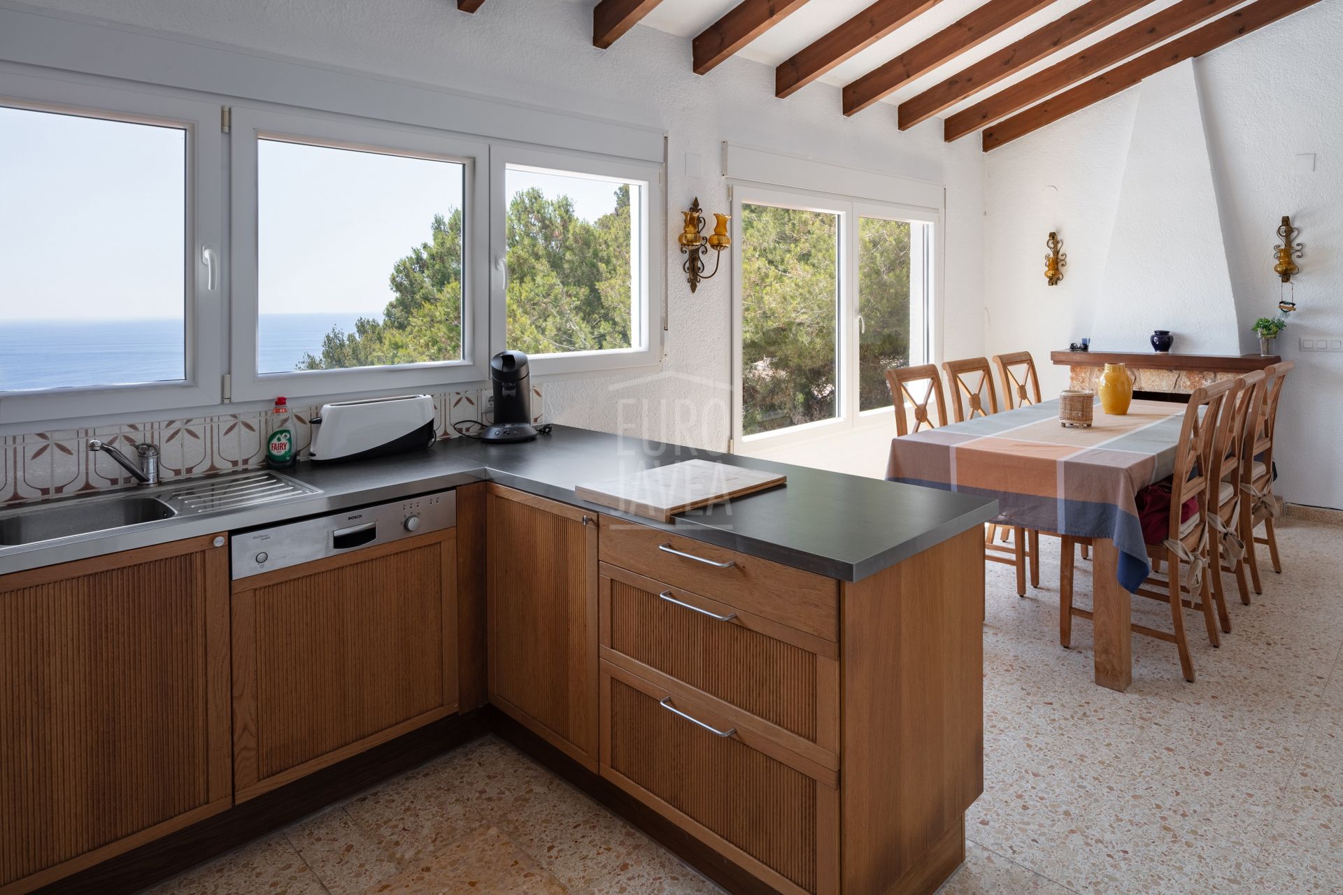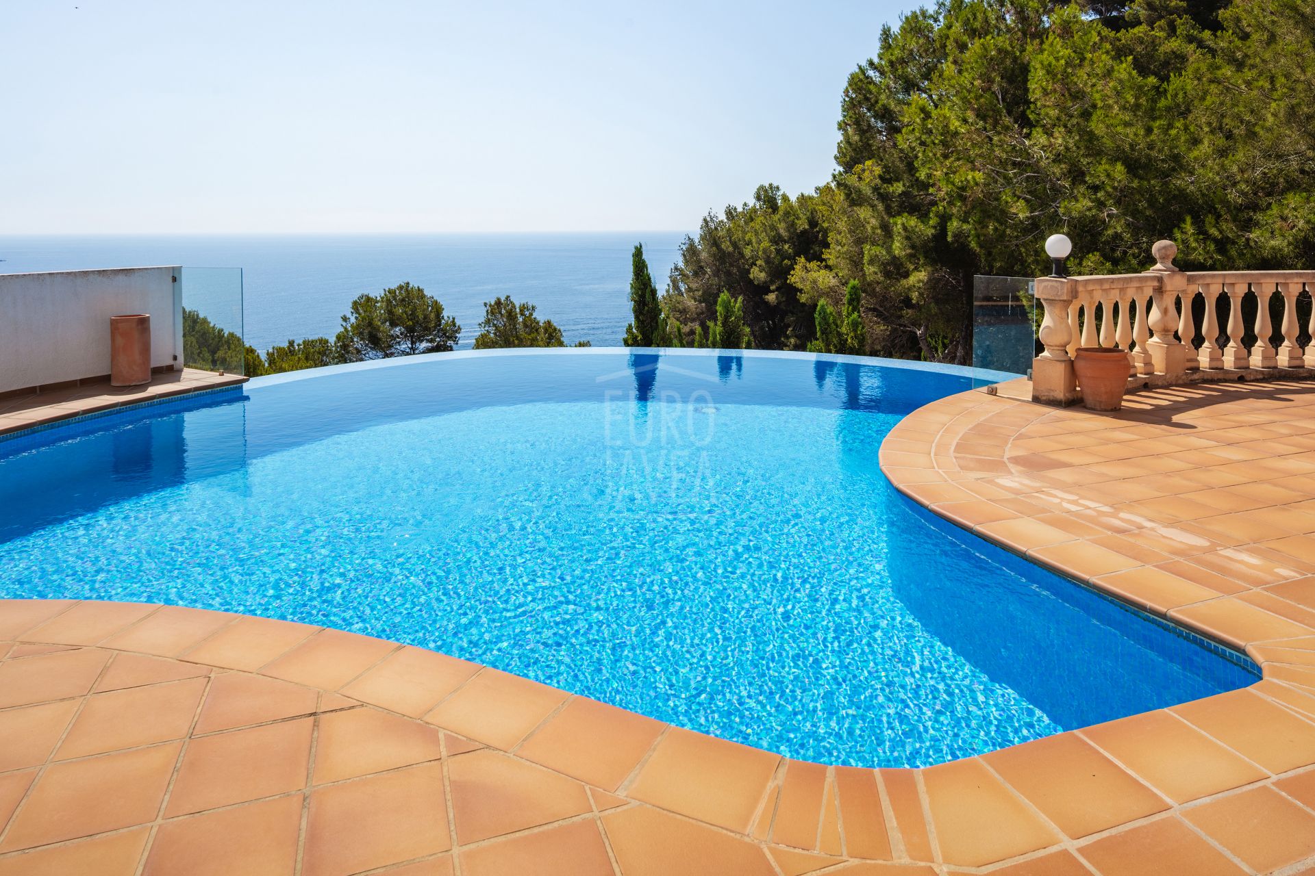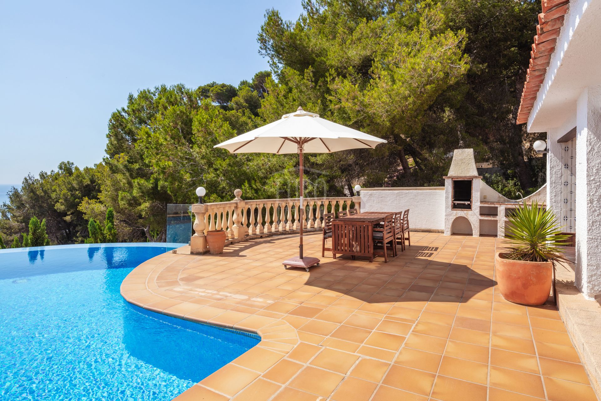 In total, the property offers five bedrooms and three bathrooms. Outside, there are various spaces designed to enjoy the surroundings, including an infinity pool, barbecue area, and several terraces and porches with sea views from almost every part of the house.