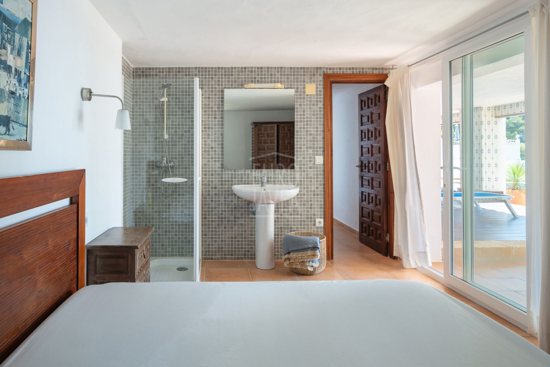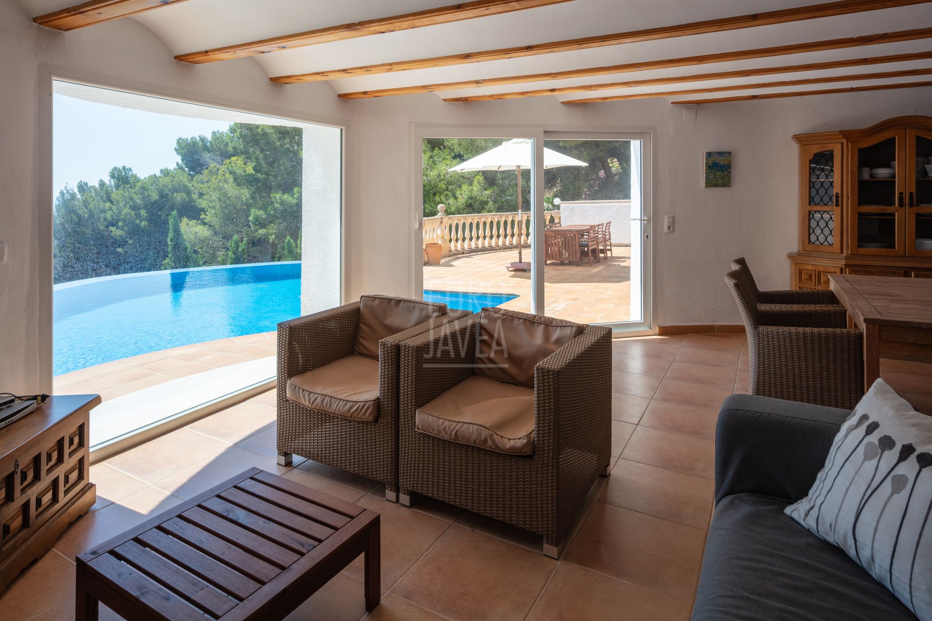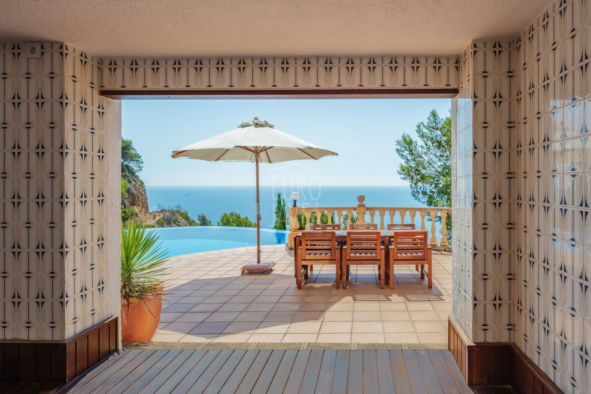 In total, the property offers five bedrooms and three bathrooms. Outside, there are various spaces designed to enjoy the surroundings, including an infinity pool, barbecue area, and several terraces and porches with sea views from almost every part of the house.