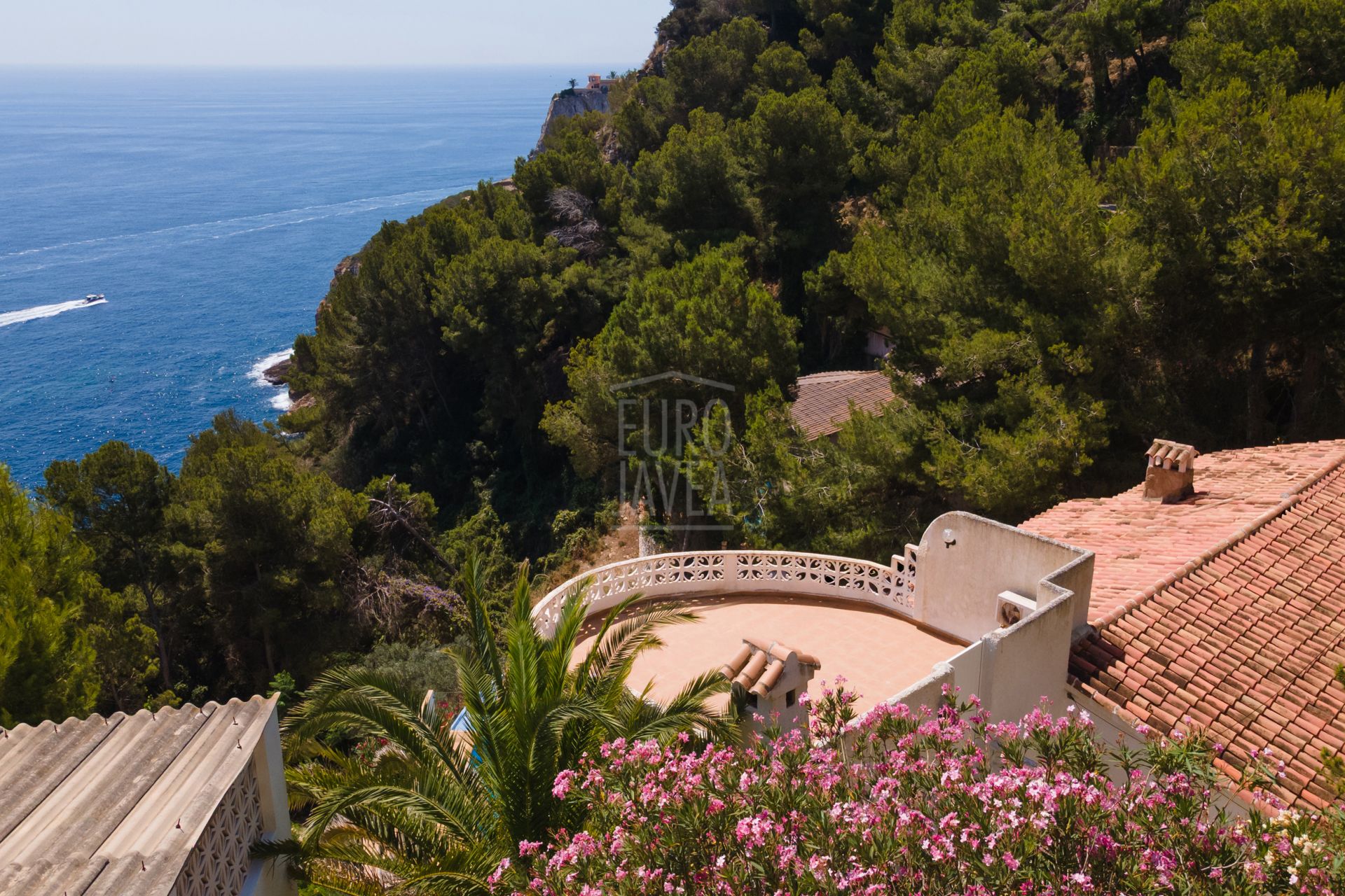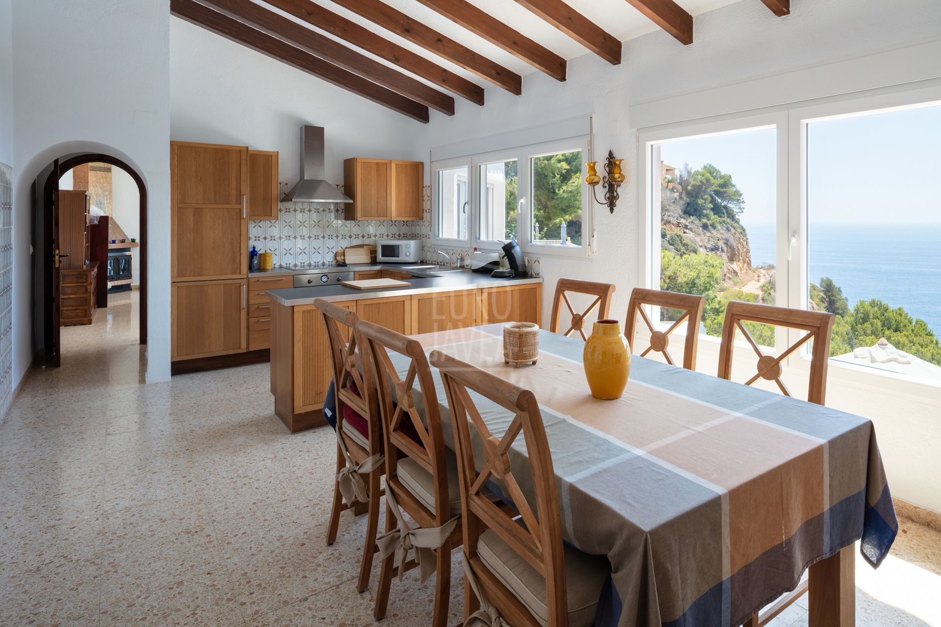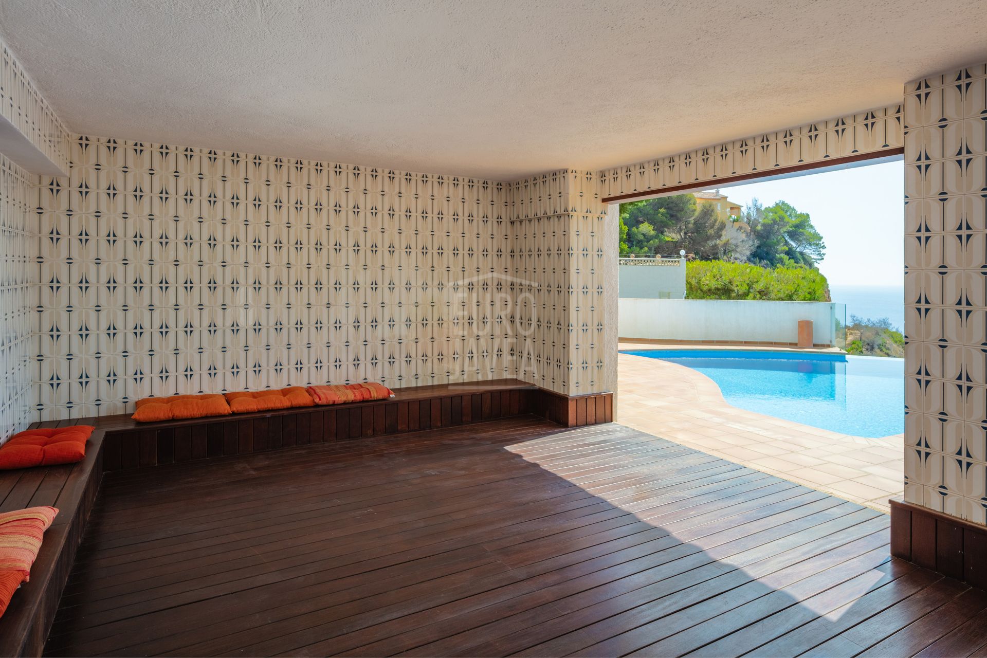 This frontline villa, managed exclusively by Eurojávea Inmobiliaria, is located in one of the most privileged and sought-after areas of Jávea, at one of the easternmost points of the peninsula. Its southeast orientation ensures excellent natural light throughout the year, while its open views of the Mediterranean offer a constant panoramic vista of the sea, coastline, and passing boats, creating a unique environment.