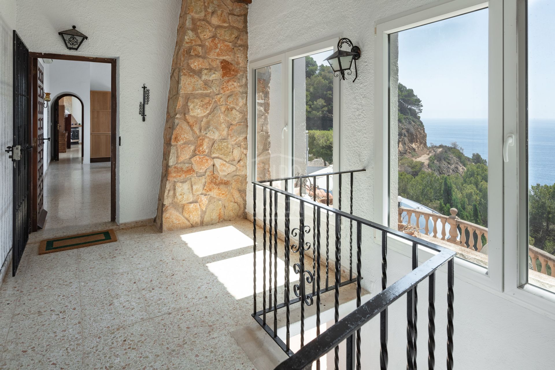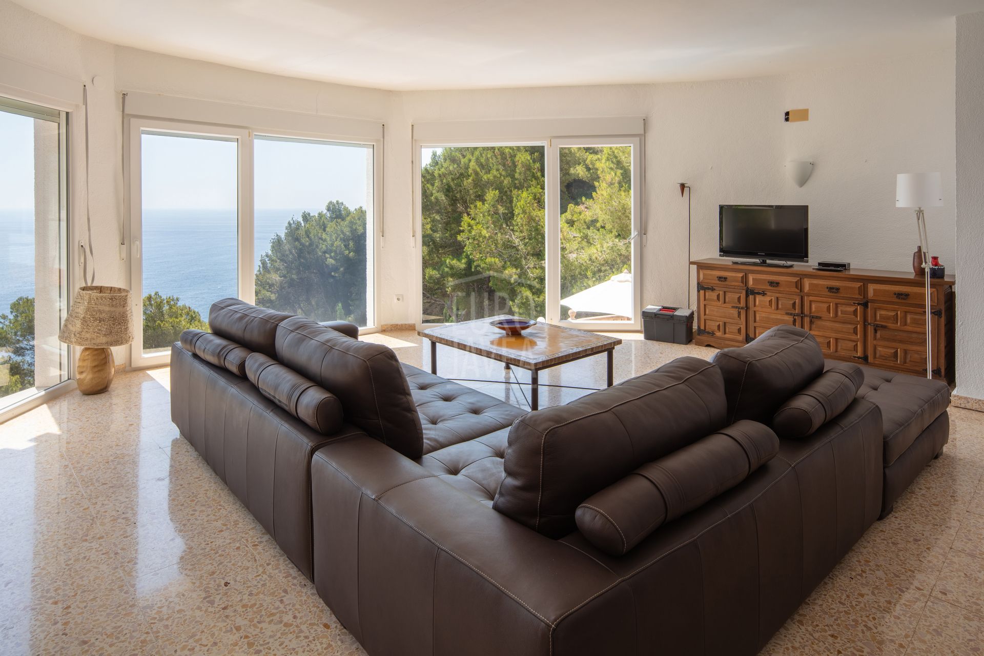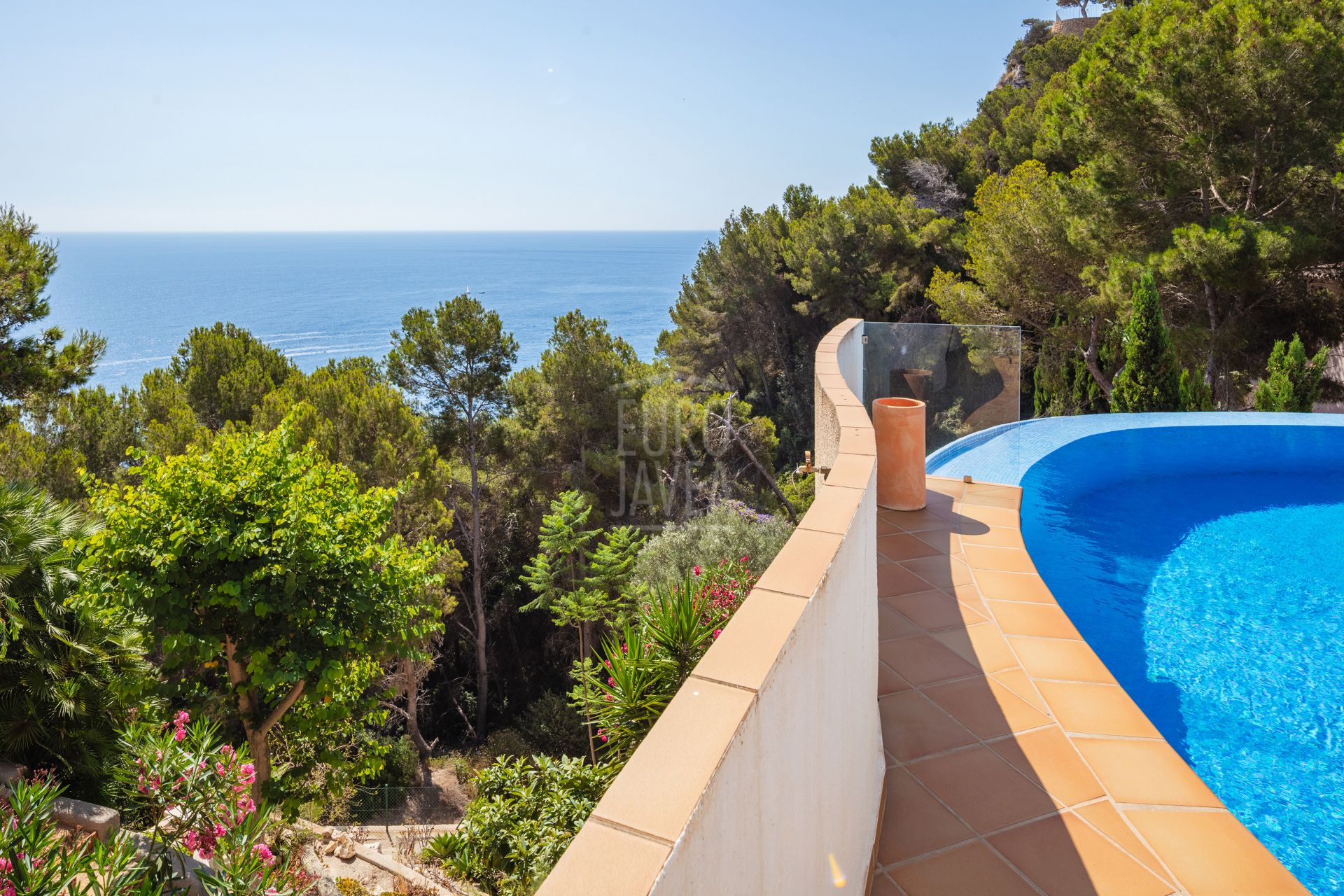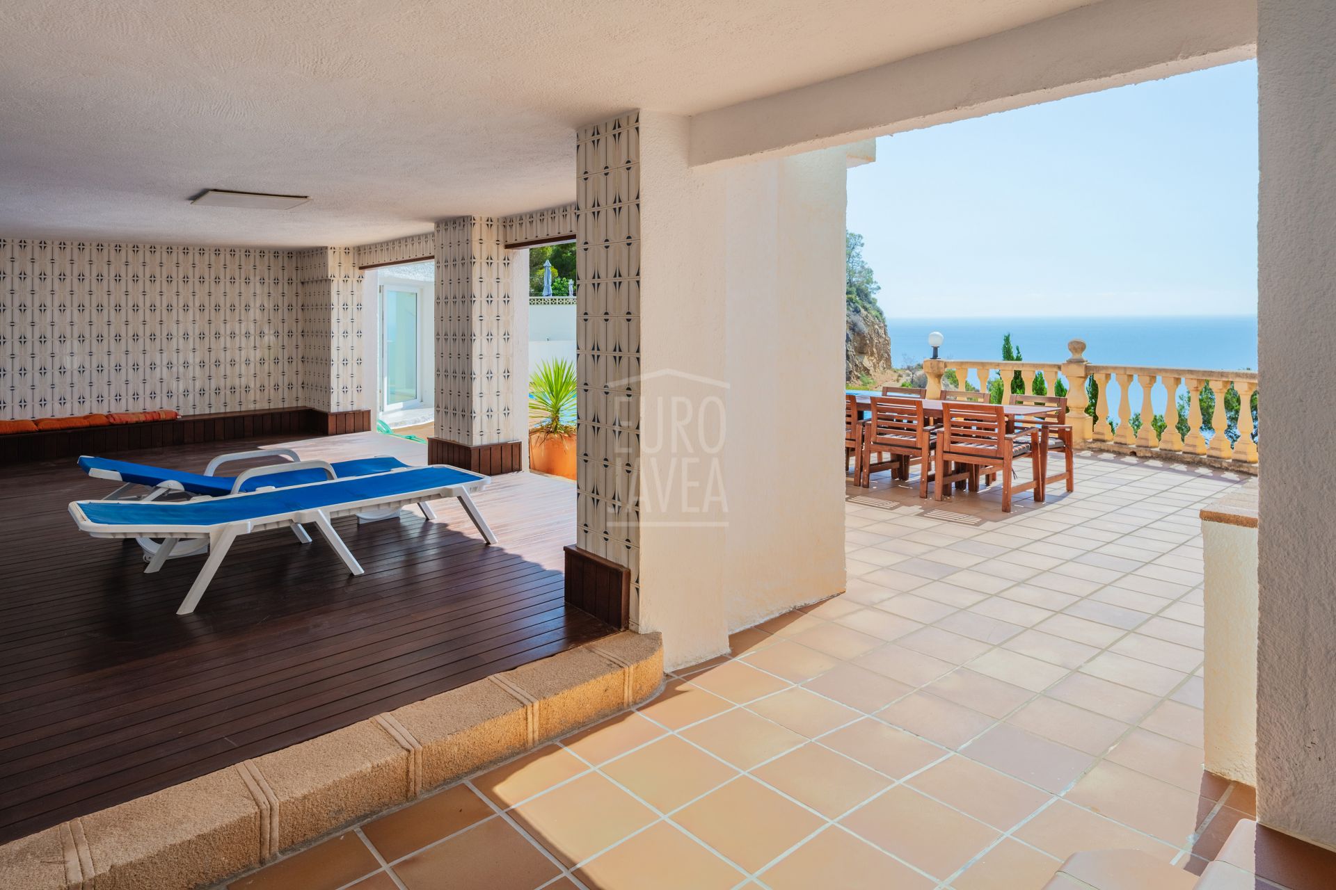 This frontline villa, managed exclusively by Eurojávea Inmobiliaria, is located in one of the most privileged and sought-after areas of Jávea, at one of the easternmost points of the peninsula. Its southeast orientation ensures excellent natural light throughout the year, while its open views of the Mediterranean offer a constant panoramic vista of the sea, coastline, and passing boats, creating a unique environment.