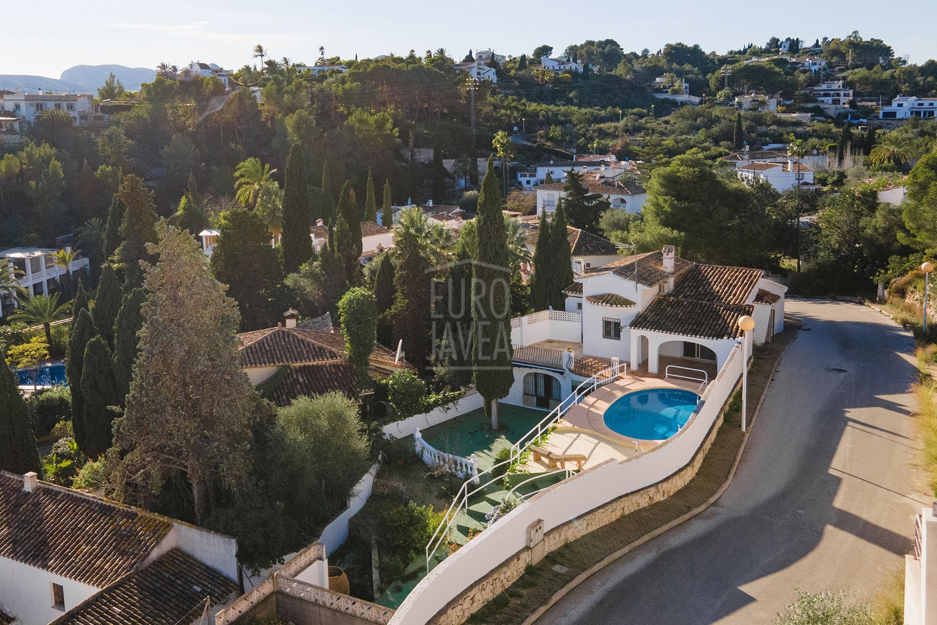 The property is located in the quiet and exclusive area of Castellans, close to Jávea’s old town. The villa is part of a small residential community of neighbouring homes, offering a calm and well-kept environment. You have full ownership of the house and exclusive private use of the plot, allowing you to enjoy the garden and outdoor areas with complete privacy.