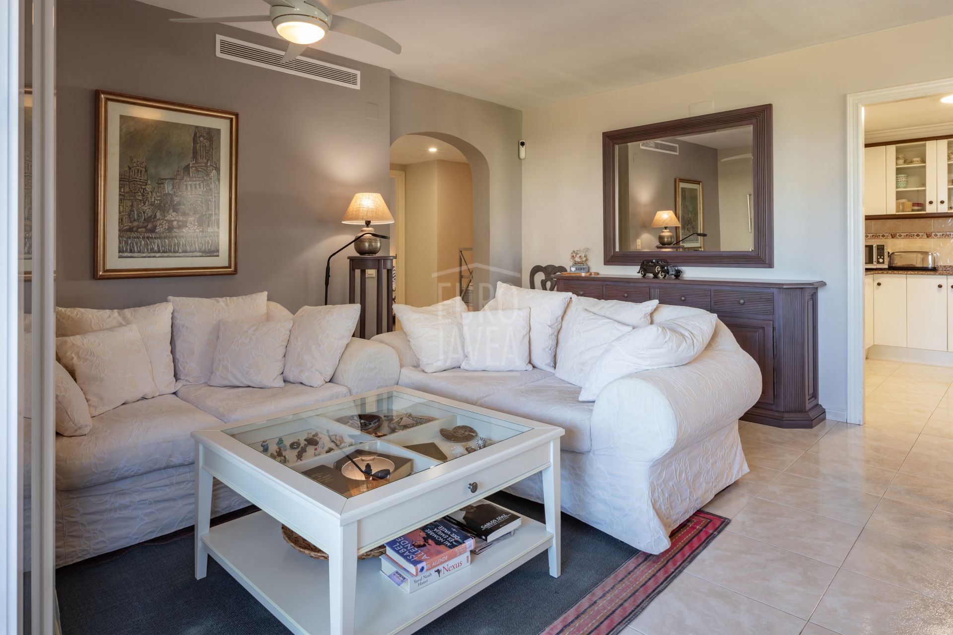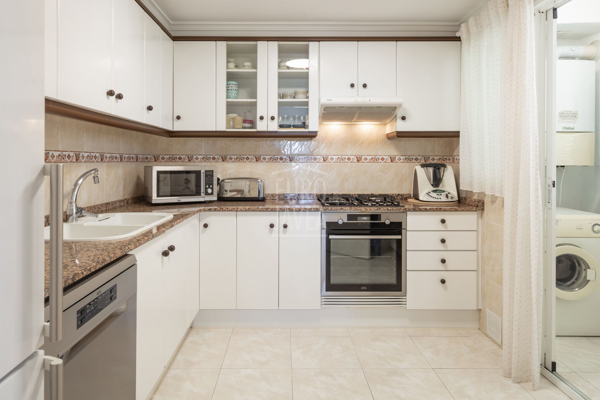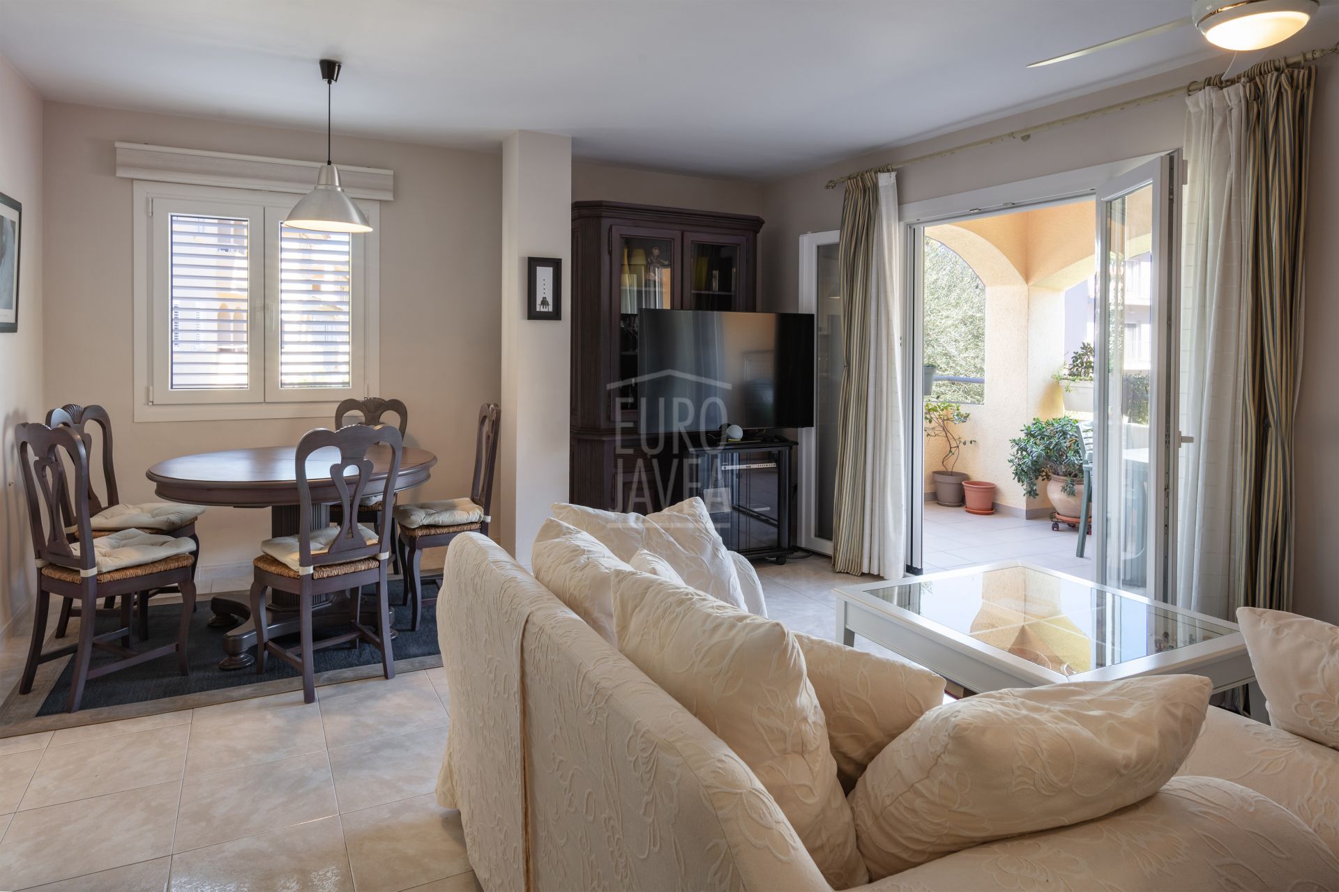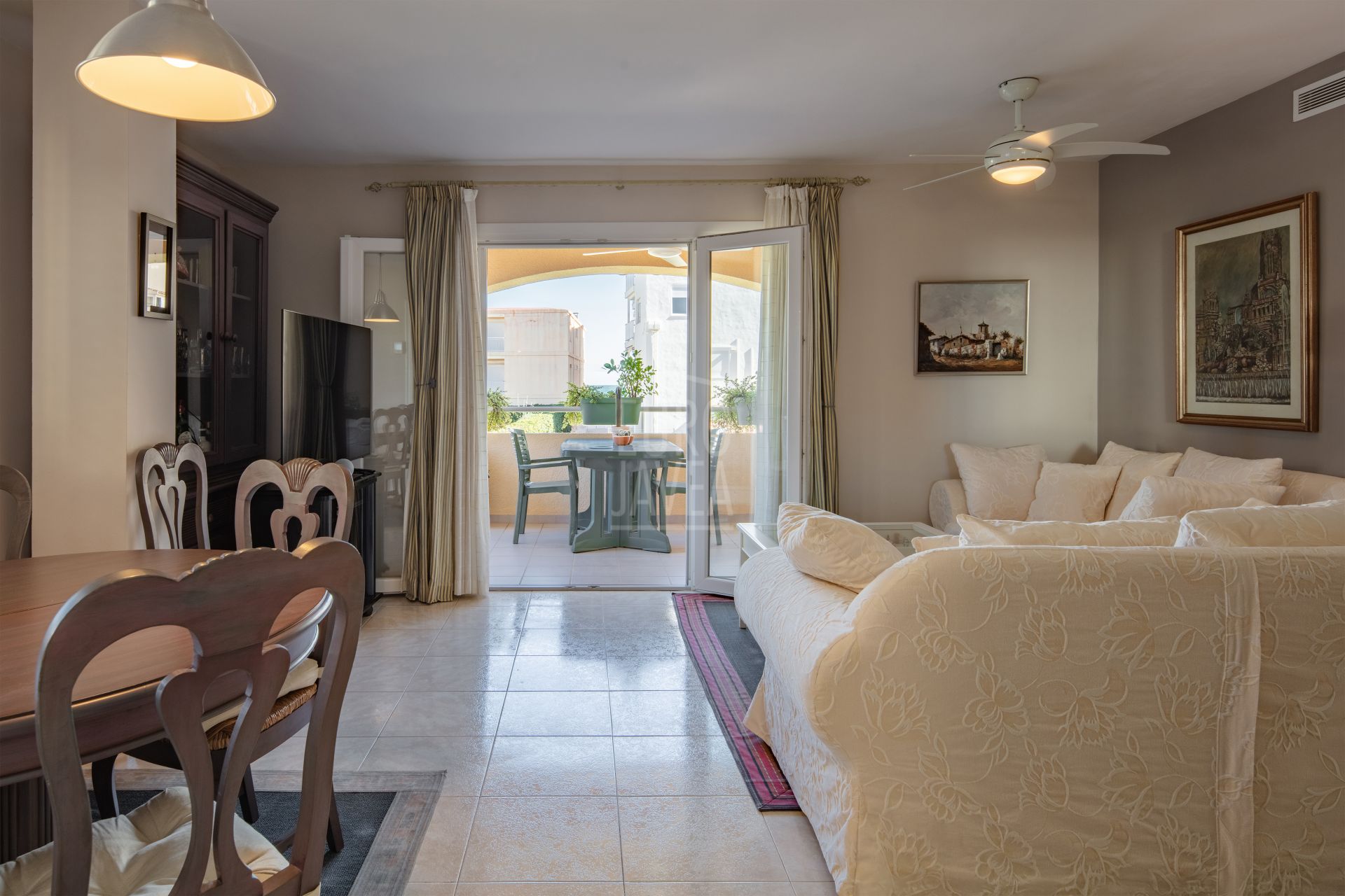 This 138 m² apartment—comprising 106 m² of living space plus a 32 m² terrace—is distributed into three bedrooms and two full bathrooms, one of them en suite, offering comfort and privacy. It features a bright living-dining room with access to the terrace, ideal for enjoying the Mediterranean climate. The separate kitchen includes a utility/laundry area, adding extra practicality.