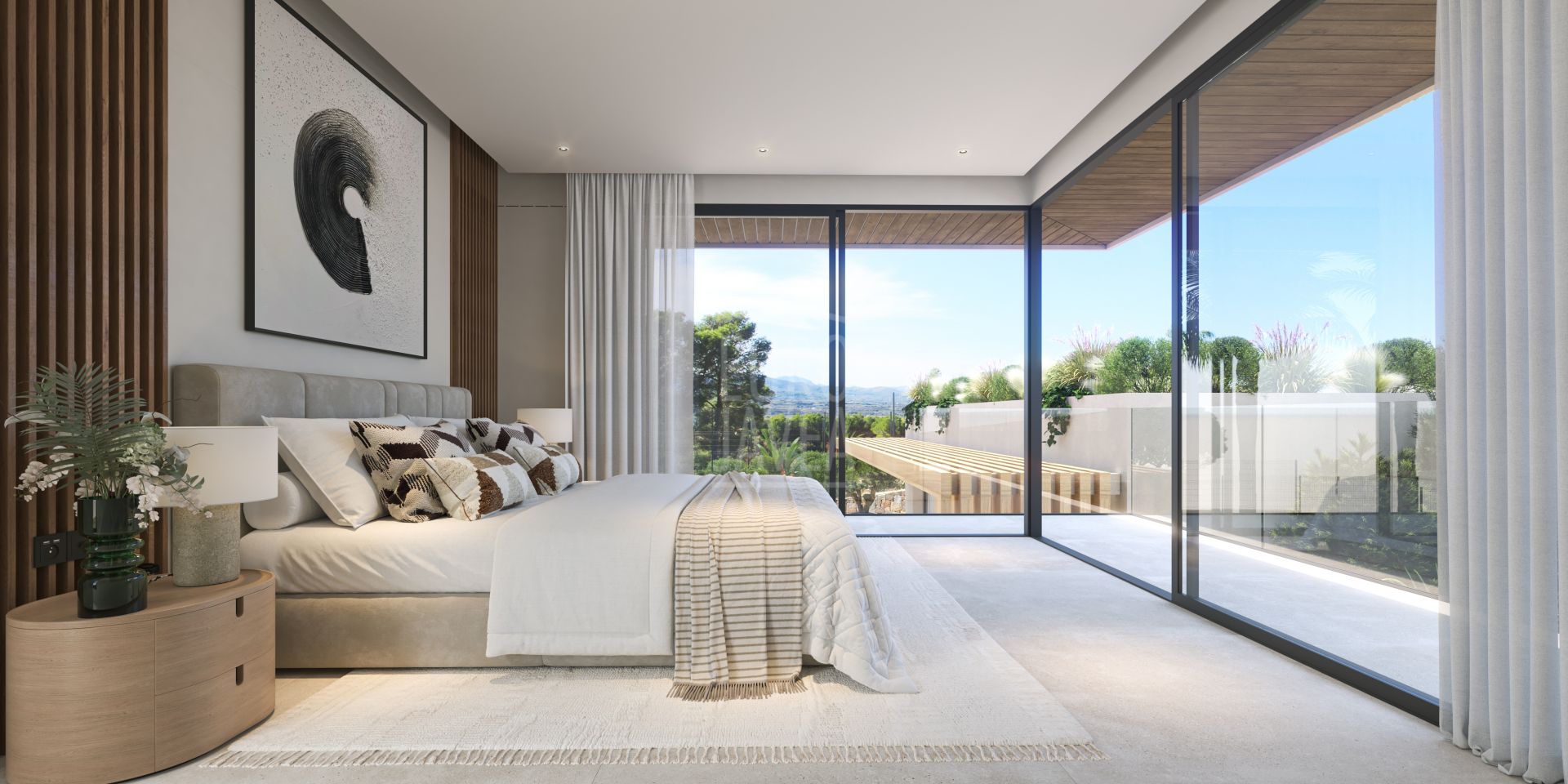 The architectural project has been carefully designed to offer luxury, elegance and maximum functionality, combining contemporary architecture with the Mediterranean lifestyle. The property stands out for its large sliding windows that completely disappear into the walls, creating a seamless transition between indoor and outdoor spaces and allowing natural light to flood every room.